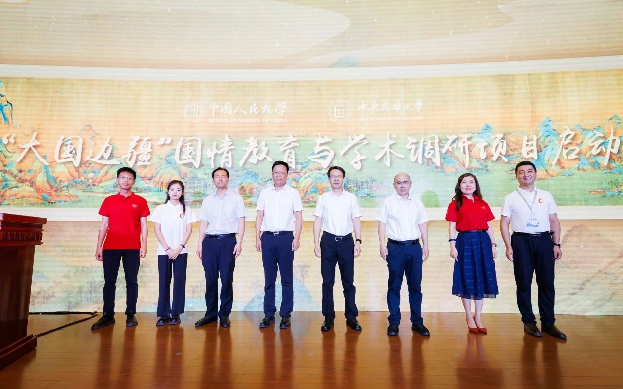华彦龙与教育部民族教育司副司长胡炜,自然资源部国土空间规划局副局长苗泽,团中央青年发展部副部长、浙江省军民融合办副主任冯华东与ag视讯、中国人民大学师生代表共同启动2024年“大国边疆”国情教育与学术调研项目。