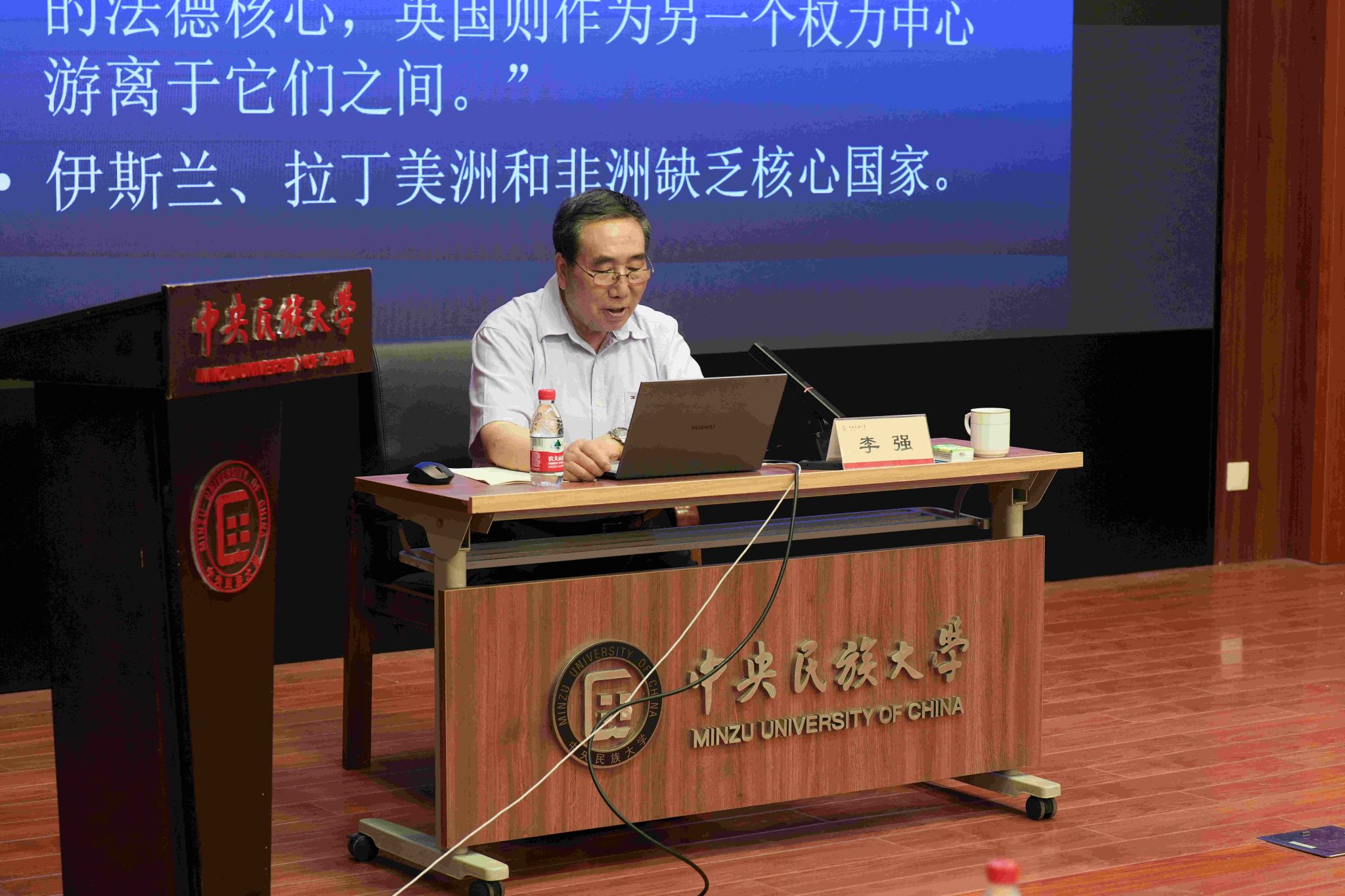 新闻网讯 6月13日,中华民族共同体学名家大讲堂系列课程第十五讲“文明的冲突与世界秩序的未来”在海淀校区知行堂开讲。讲座由校党委常委、副校长石亚洲主持,北京大学政府管理学院教授李强主讲。