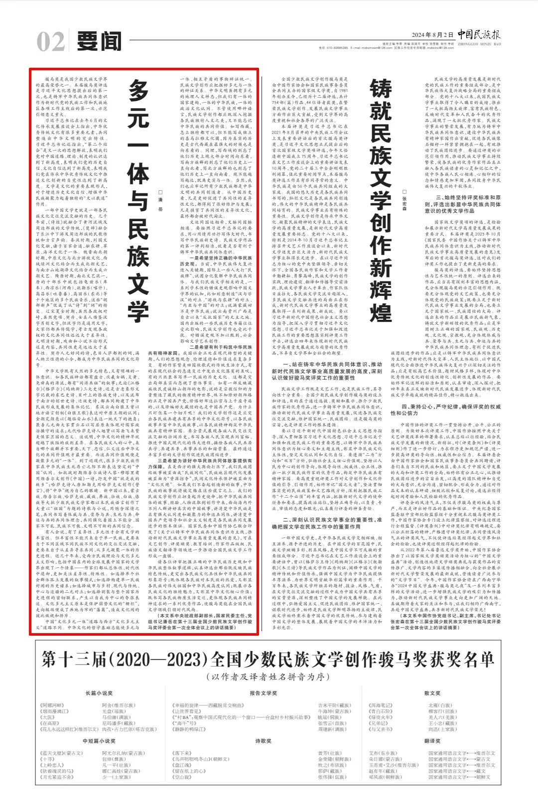 三是希望为讲好中华民族共同体故事提供有力保障。在美西方的强大舆论打压下,我们民族团结故事被歪曲成“民族同化”,民族地区现代化发展被歪曲为“资源掠夺”,民间文化传承保护被歪曲为“文化灭绝”。如果我们不奋起创造新的叙事,中华民族的故事就将被定格在这些谎言之上。我们的民族文学创作应担负起历史使命,把中华民族共同体的故事、经验、人物汲取到创作中来,面向海内外不同人群讲好真实的中国故事,讲清楚中华民族是具有强大认同度和凝聚力的命运共同体,讲清楚中国共产党领导和社会主义制度是各民族共同发展进步的根本保证。国家民委和中国作协已联合印发了《关于以铸牢中华民族共同体意识为主线,推动新时代民族文学事业高质量发展的意见》,可在文艺创作、评奖颁奖、教育培训、作家作品版权、民族语文翻译等领域进一步推动全国民族文学工作形成一盘棋。