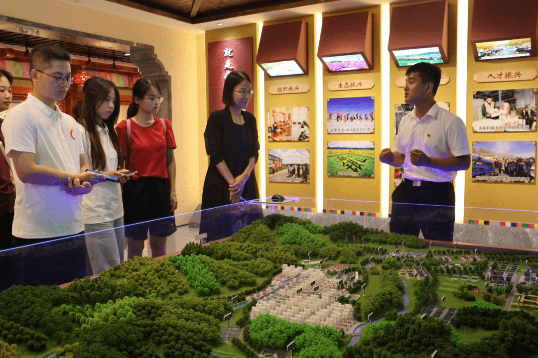 在光东村,实践团参观村史馆和生态农田,了解其绿色主导产业与休闲旅游农业相结合、民族文化特色相融入的发展模式,学习如何让“乡村游”变为“富民路”。