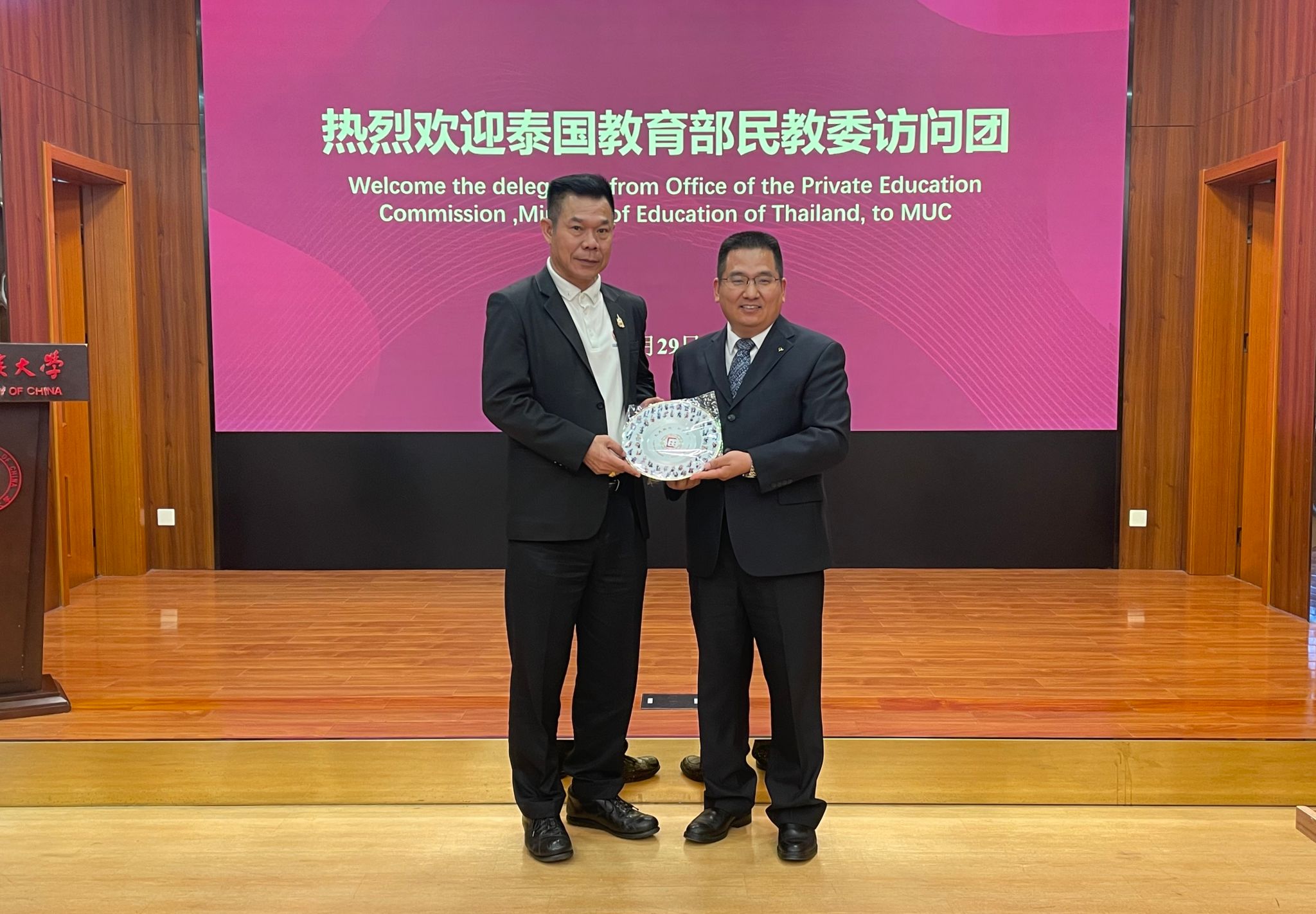 李计勇向介绍了学校历史、学科体系、办学特色和国际化办学成果,特别是近年来以铸牢中华民族共同体意识为主线,推进转型升级和高质量发展的情况。李计勇表示,作为中国最早招收留学生的高校之一,ag视讯愿意与泰国教育部民校教育委员会、泰国各地区教育局以及泰国各类学校在学科发展、科学研究、专业建设、人才培养等领域加强务实合作、携手共赢、共谋发展。