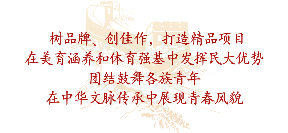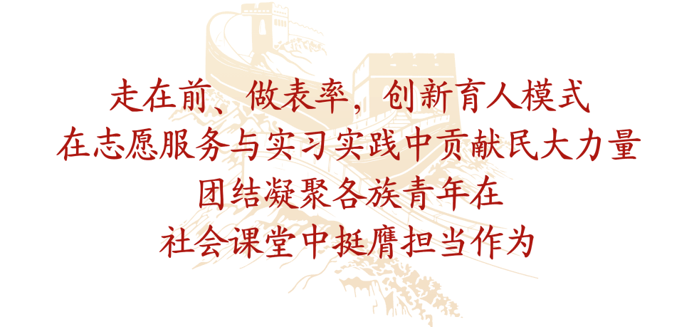 校团委着力构建第二课堂实践育人体系,携手中国人民大学开展“大国边疆”育人工程,开展“我们眼中的中国式现代化”社会实践示范项目,创新打造“千团走千村,万人边疆行”暑期社会实践专项计划;组织各族青年师生参与重大活动服务保障工作,助力首都政治文化建设;全方位探索中国共产党边疆治理的自主知识体系创新高地,打造新时代“大思政课” 育人品牌,努力引导广大青年学生在“行走的大思政课”中感悟“四个共同”“四个与共”的深厚基础和中国式现代化的伟大实践,切实增强青年学生的“五个认同”和文化自信。