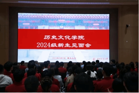 历史文化学院院长彭勇用三句话寄语新生——“学习要随时努力,生活要随遇而安”“做最好的努力,做最坏的打算”“守正创新,与时代同行”,传达了对新生在学习、生活以及个人发展等方面的期望,以一堂生动的“第一课”为新生开启了新篇章。
