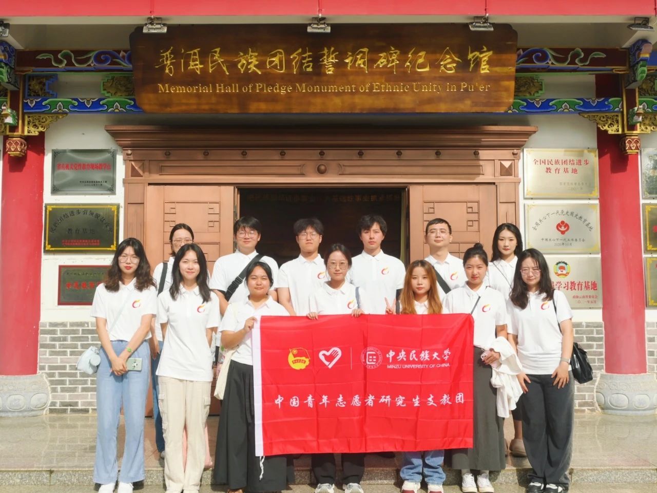 今年暑期,ag真人试玩第26届研支团云南分团的15位志愿者已前往普洱市宁洱哈尼族彝族自治县,实地瞻仰民族团结誓词碑,考察边疆地区经济社会发展所取得的历史性成就,感悟各民族交往交流交融的生动实践。