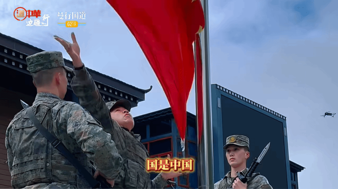 新疆塔城沙勒克江·依明在自家小院升起的国旗
