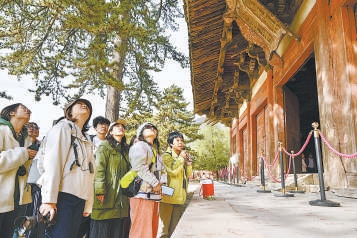 素有“中国第一国宝”美誉的唐代木结构建筑佛光寺东大殿古朴肃穆,气势恢宏。这座建于唐大中十一年(公元857年)的大殿距今已有一千多年历史,是我国现存规模最大、保存最为完好的唐代木结构建筑。走进殿内,中国史专业学生徐畅连连感叹:“这一刻仿佛‘穿越’到了千年前,读过的很多文献瞬间活了起来!”亲眼见到不同时期的古迹,可以非常直观地感受到历史的跨度。