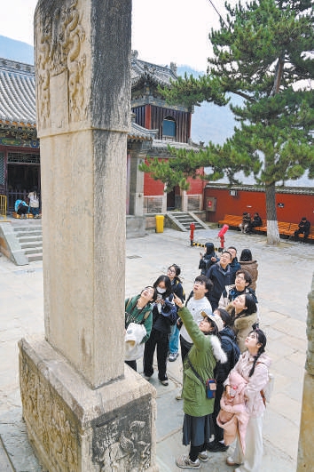深入五台山建筑群,多民族语言文字碑刻林立。大家纷纷调动日常所学知识辨认古老的文字——它们记录着包括建筑、文艺、经济等多方面的信息,是历史上各民族交往、交流、交融的重要见证。