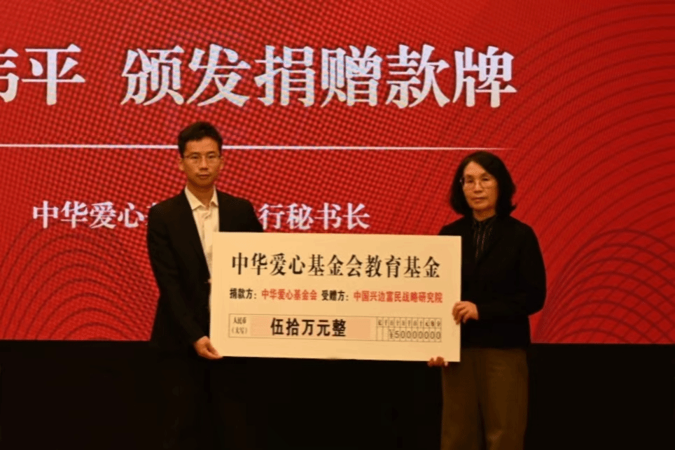 张丽君代表中国兴边富民战略研究院接受捐赠款牌