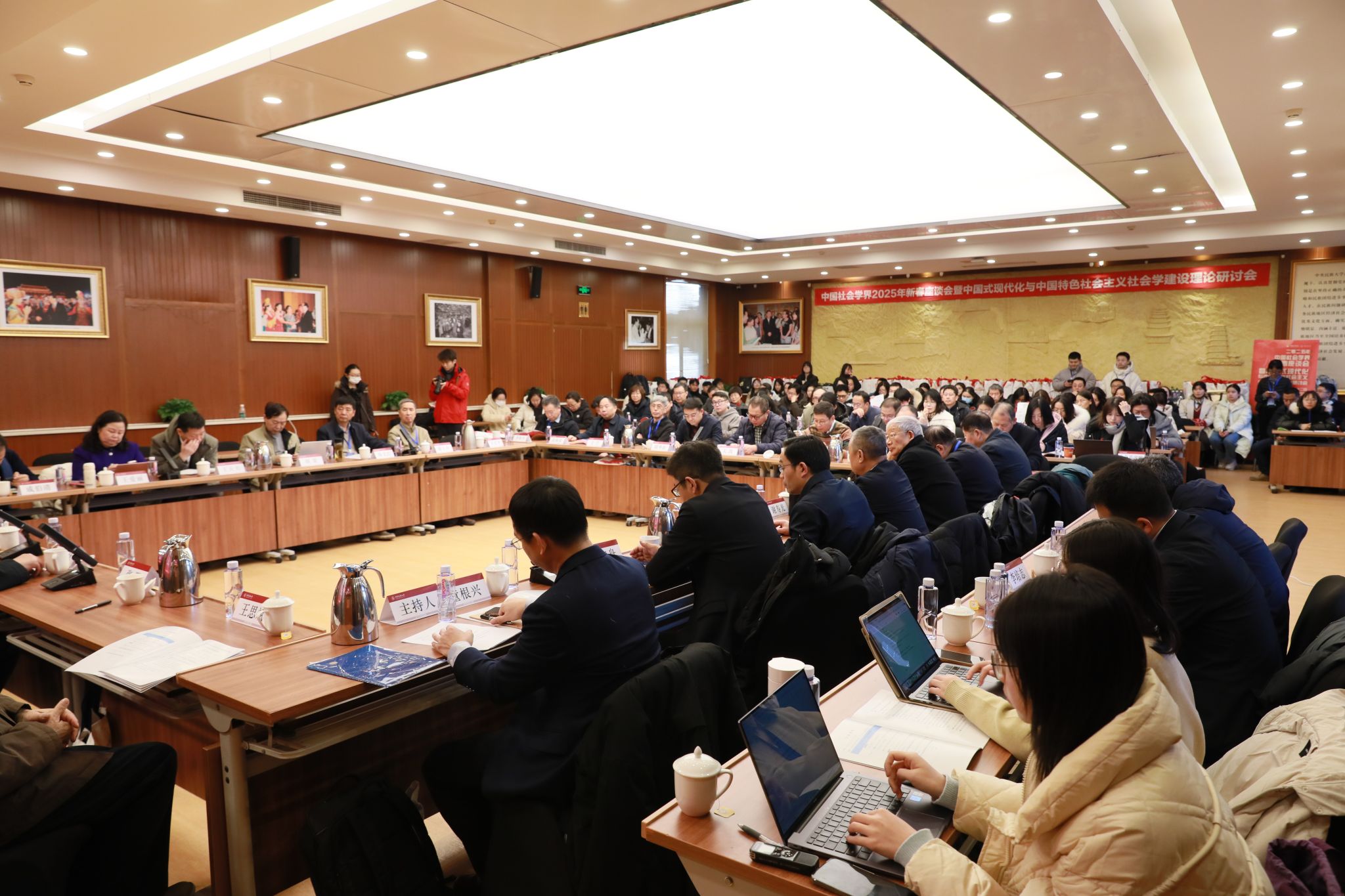 新闻网讯 2025年1月12日,由中国社会学会主办,ag真人试玩民族学与社会学学院、中国社会学会学术传播专业委员会承办的“中国社会学界2025年新春座谈会暨中国式现代化与中国特色社会主义社会学建设理论研讨会”在ag真人试玩海淀校区知行堂举行。中国社会学会第七届青年社会学者讲坛以及中国社会学会分支机构工作联席会也在此期间同步举行。来自中国社会科学院、北京大学、清华大学、中国人民大学、浙江大学、南京大学、南开大学、上海大学、中山大学、厦门大学、吉林大学、东南大学、华东师范大学、中国农业大学、兰州大学、哈尔滨工程大学、华中农业大学,中国社会科学杂志社、《社会学研究》编辑部、社会科学文献出版社等国内数十所高校、科研院所、期刊出版界的百余位专家学者参加研讨。