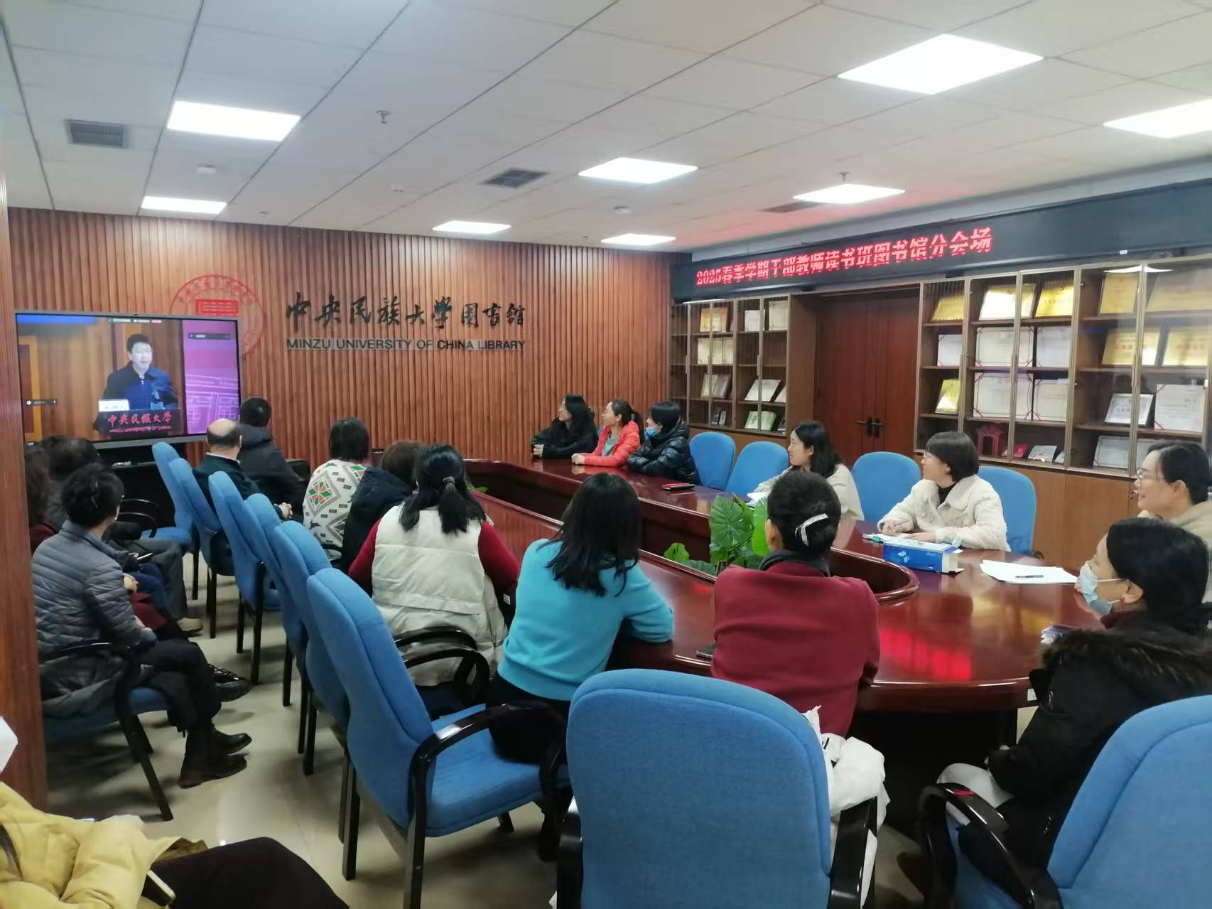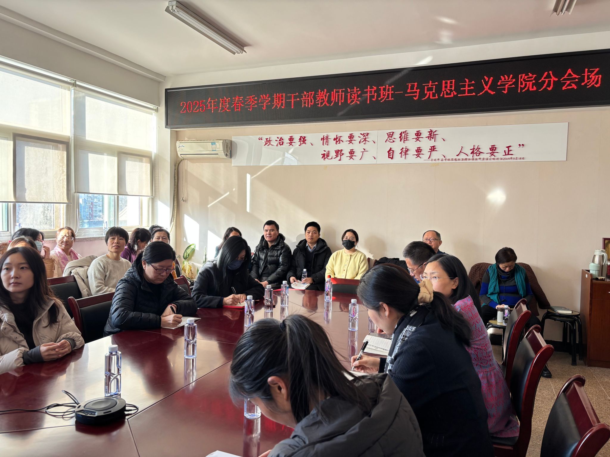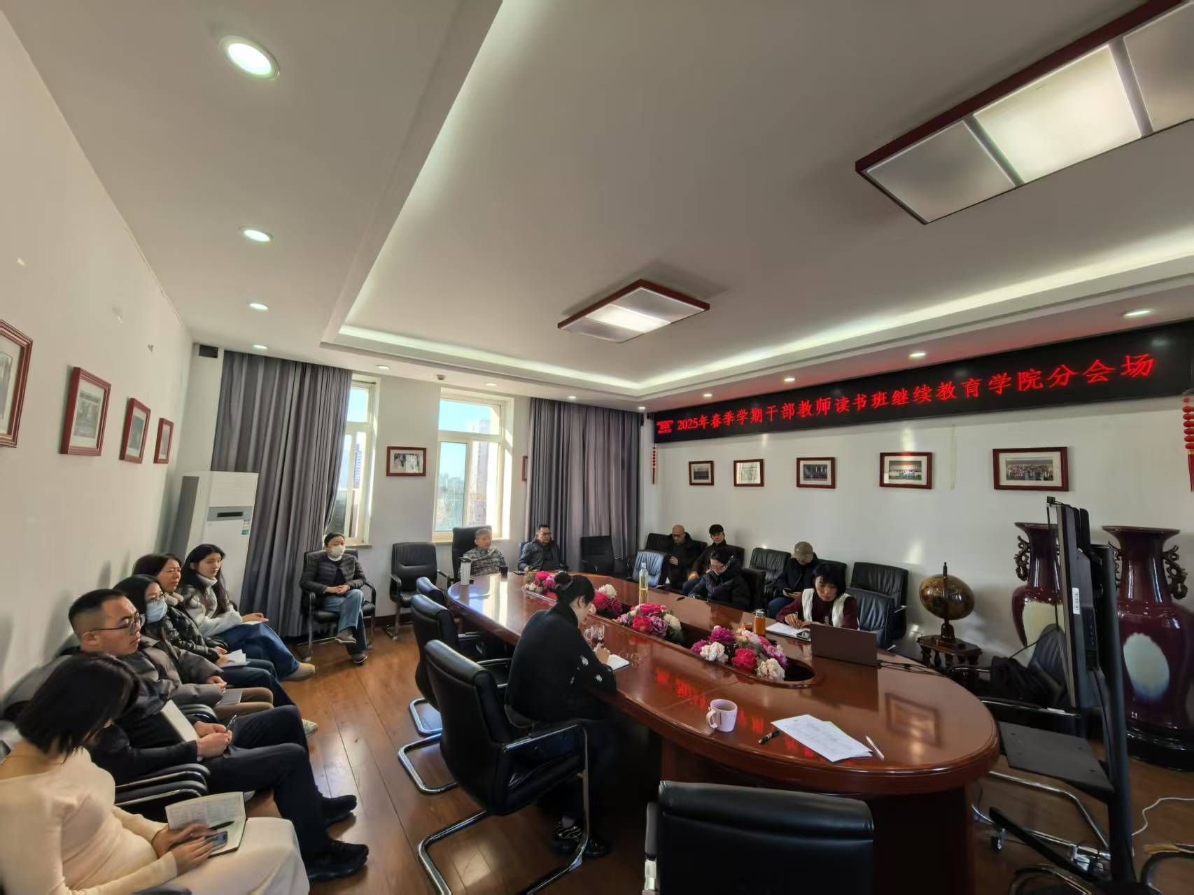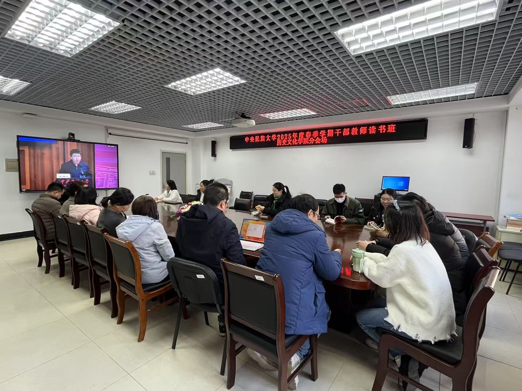 全体校领导和干部教师通过线下和线上相结合的方式参加读书班。(摄影/马丹妮)