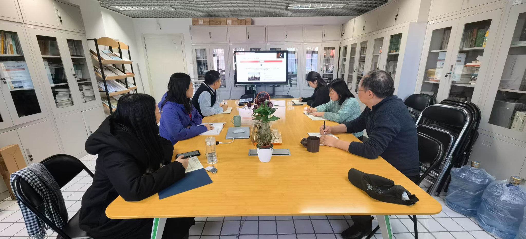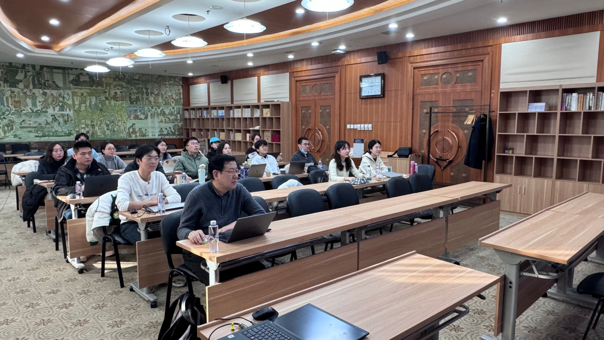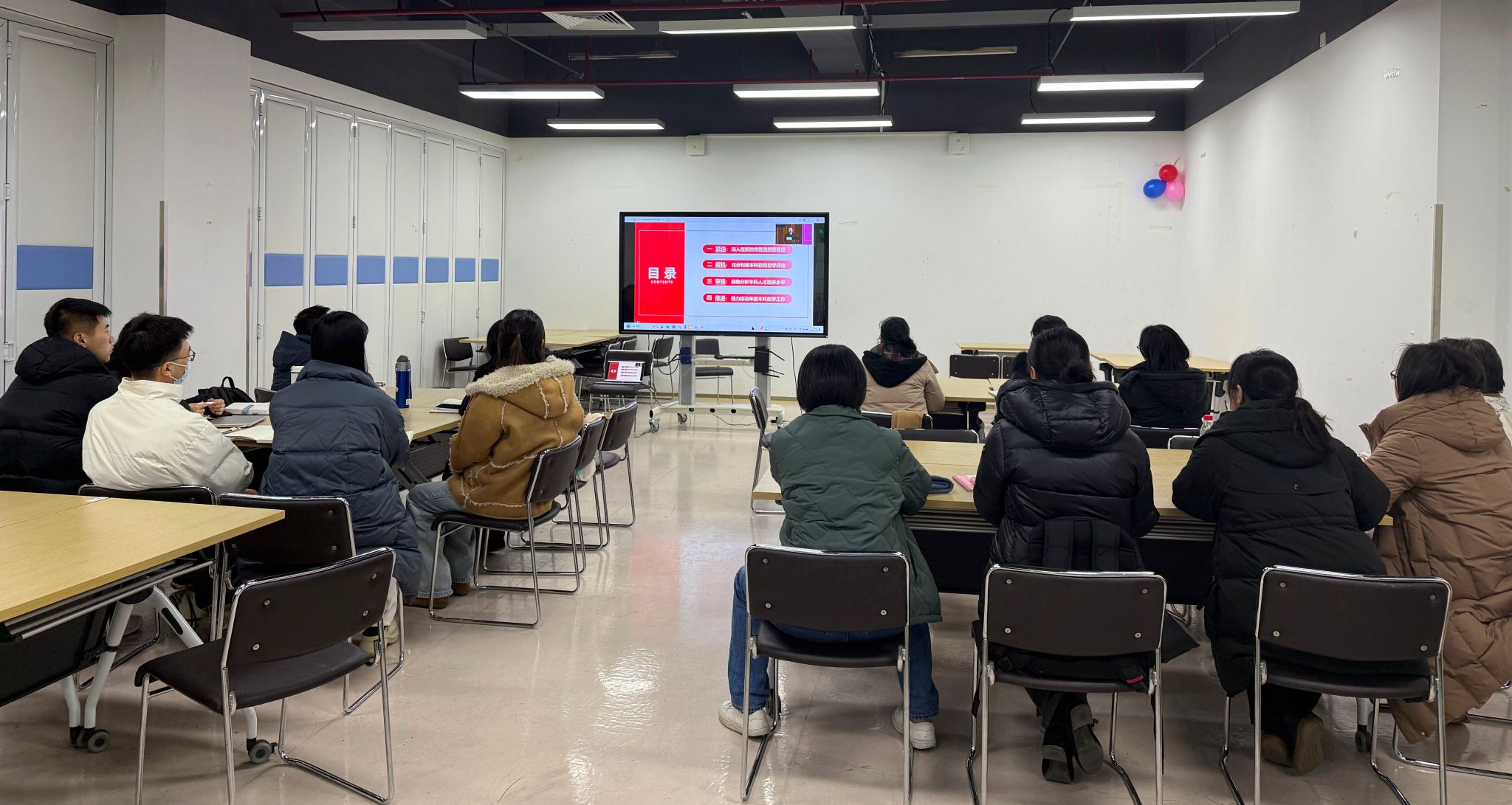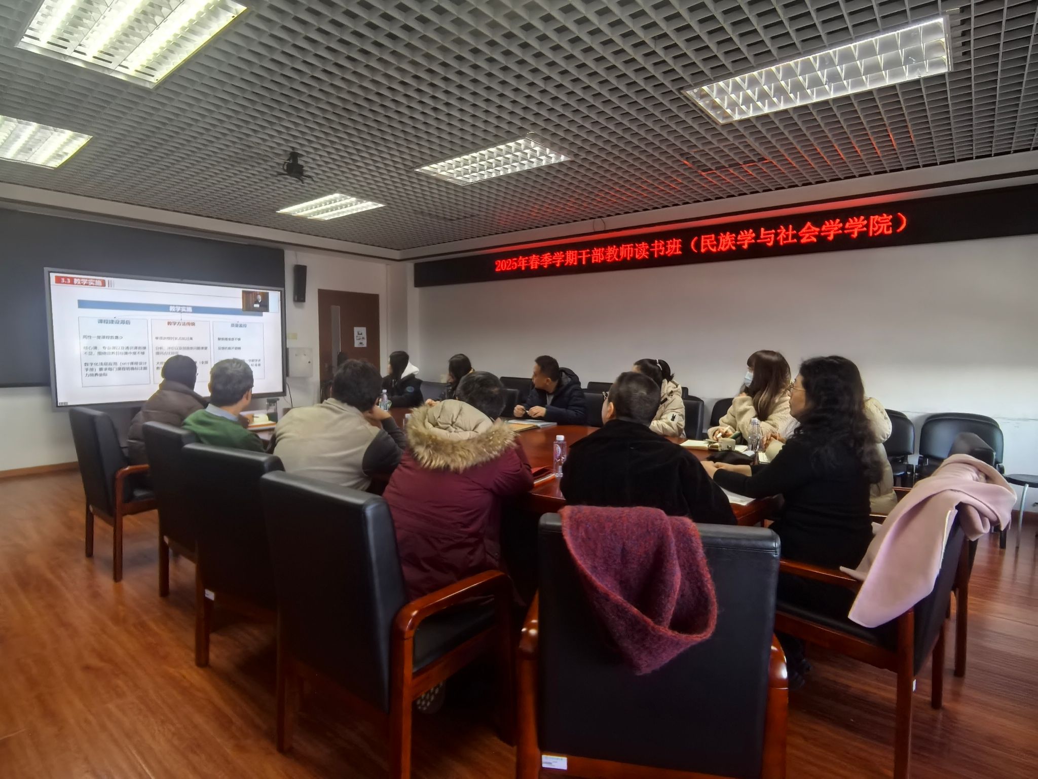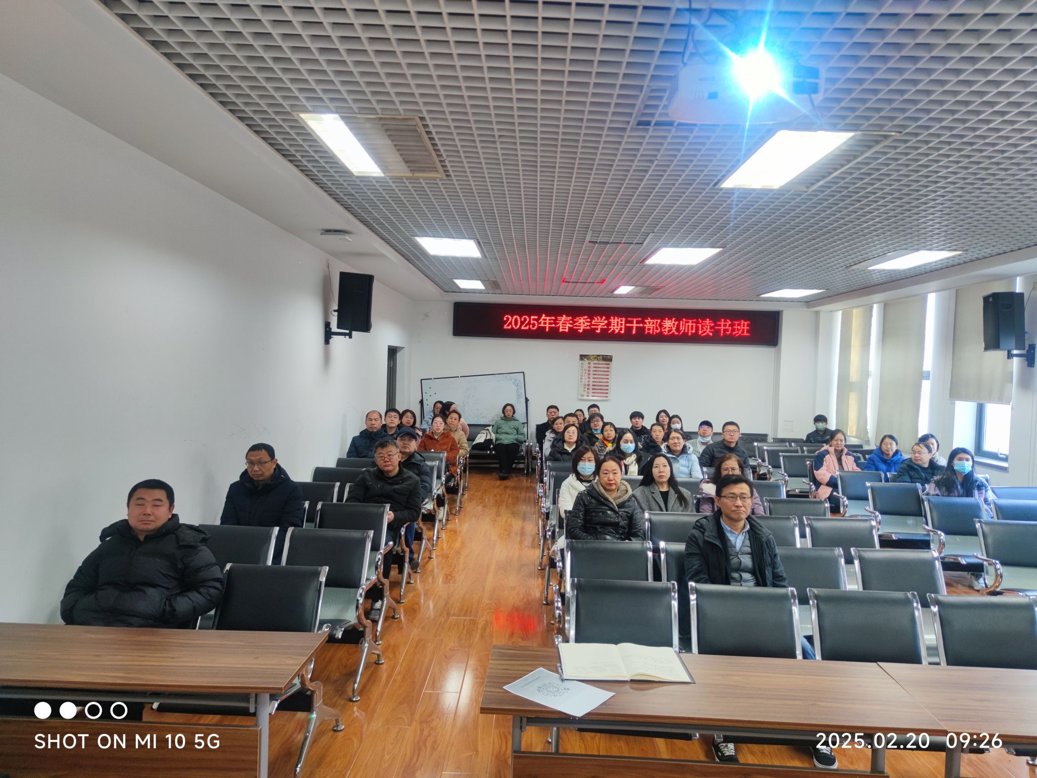 全体校领导和干部教师通过线下和线上相结合的方式参加读书班。(摄影/马丹妮)