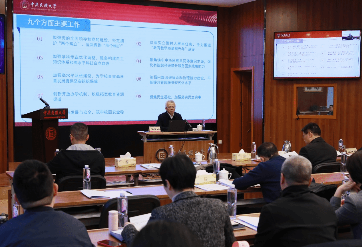查显友指出,全校上下要深刻把握新形势新任务,认清当前历史方位和改革发展任务,进一步增强建设特色鲜明世界一流大学的使命感、责任感、紧迫感。他强调,要服务好国家重大战略需求,在中华民族共同体建设和理论支撑方面做出独树一帜的贡献;要聚焦培养拔尖创新人才,不断提升服务国家战略和科技创新的支撑力和贡献力;要着力建构中华民族共同体理论体系,讲好中华民族共同体故事,为高质量服务党的民族工作作出积极贡献;要把握人工智能技术深刻影响高等教育领域的历史大势,积极赋能民族领域自主话语体系的构建;要开好第九次党代会和制定好学校“十五五”发展规划,谋划好未来发展蓝图,以全面深化改革推动学校在建设教育强国中作出更大贡献。
