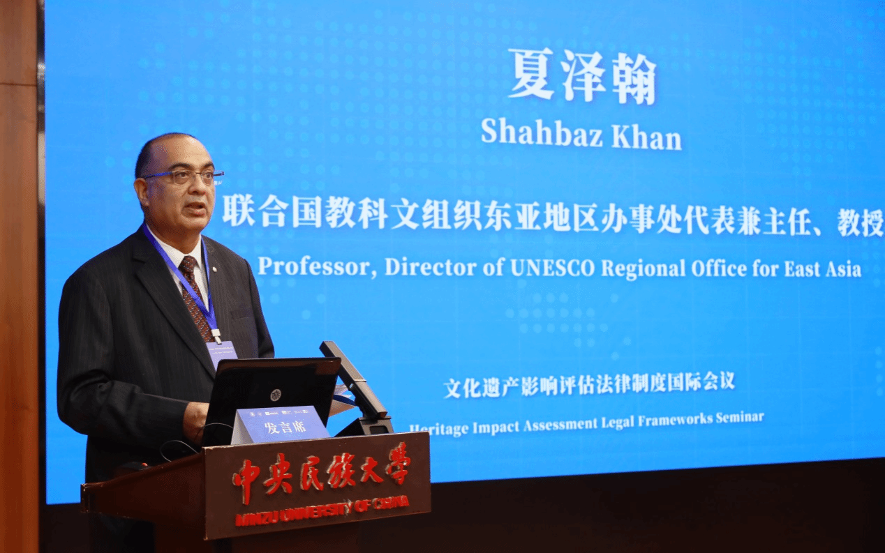 联合国教科文组织东亚地区办事处代表兼主任夏泽翰(Shahbaz Khan)教授指出,世界文化遗产保护面临诸多挑战,而本次会议能够提供新的契机;中国人民大学法学院院长杨东教授介绍中国人民大学法学院在文化遗产法领域的成果,也认为“文化遗产影响评估”制度能够推动文化遗产保护;联合国教科文组织亚太地区世界遗产培训与研究中心上海分中心主任邵甬教授同样分享了世界遗产保护培训与研究的丰富经验。