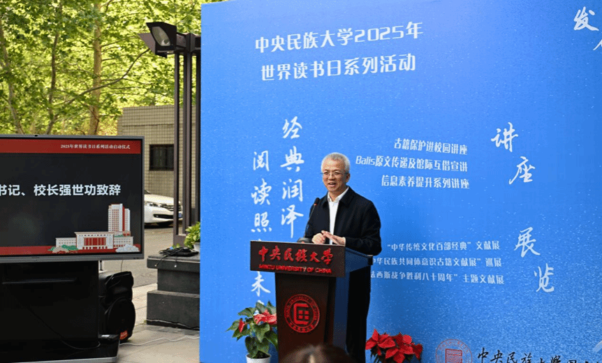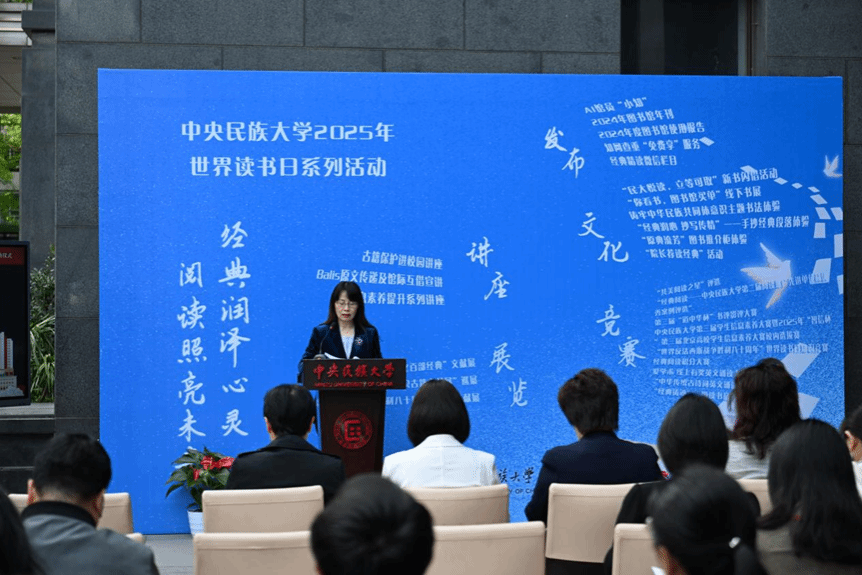 强世功致辞表示,在“世界读书日”来临之际,图书馆开展一系列活动正当其时。他回顾了ag视讯在延安办学的经历,提出学校秉承的红色基因,蕴含了延安时代不断阅读经典、创造经典、书写经典的历史记忆,这种历史的传承和记忆,应该成为今天ag视讯的财富。我们要不断铸牢中华民族共同体意识,在数字文明时代书写“美美与共”的民大新篇章,为构建中华民族现代文明和中国的民族团结进步事业贡献民大力量。