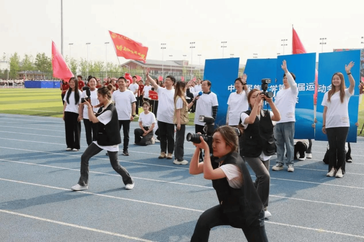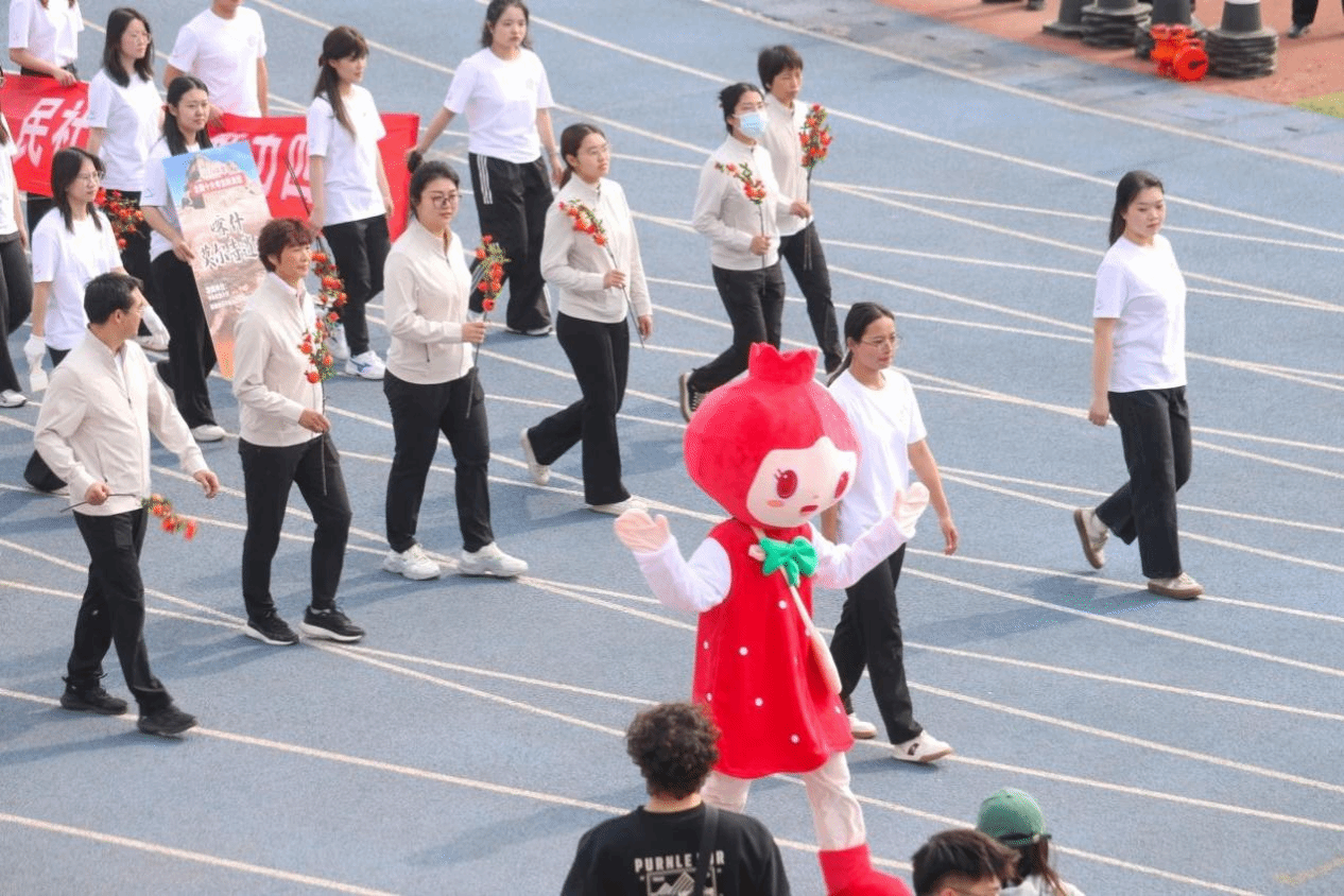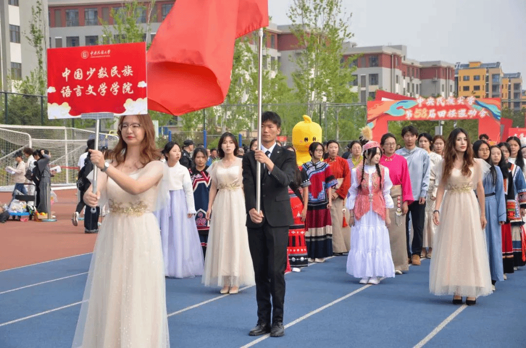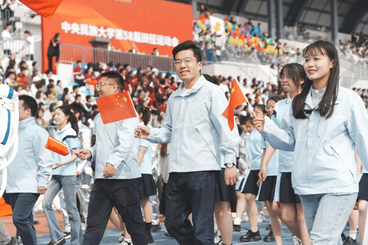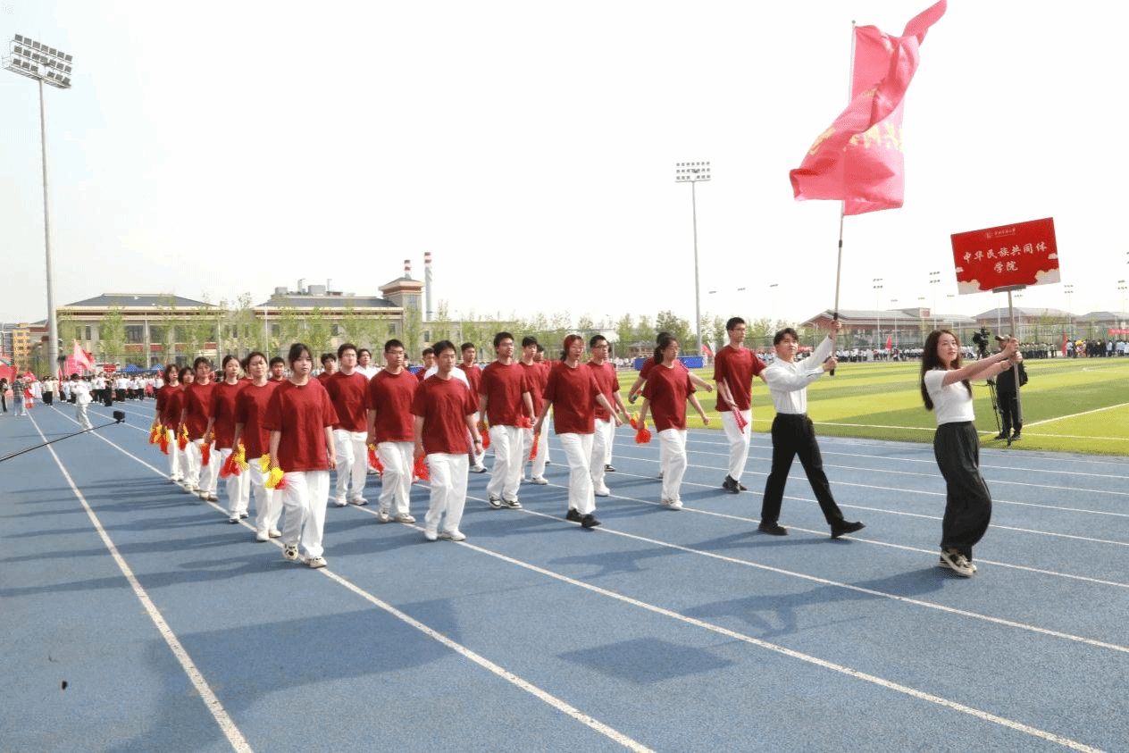 本届运动会主题为“青春飞扬 融聚民大 智创未来”。开幕式前,数百名学子在《我的祖国》音乐中演绎二十四式太极拳,动作整齐划一、刚柔并济。开幕式上,国旗队、校旗队、红旗队、裁判员方队、各学院运动员代表方队、教职工代表方队等依次入场。他们精神抖擞,迈着矫健的步伐,伴着嘹亮的口号,以昂扬奋进的姿态列队经过主席台,展现出蓬勃向上的精神风貌。