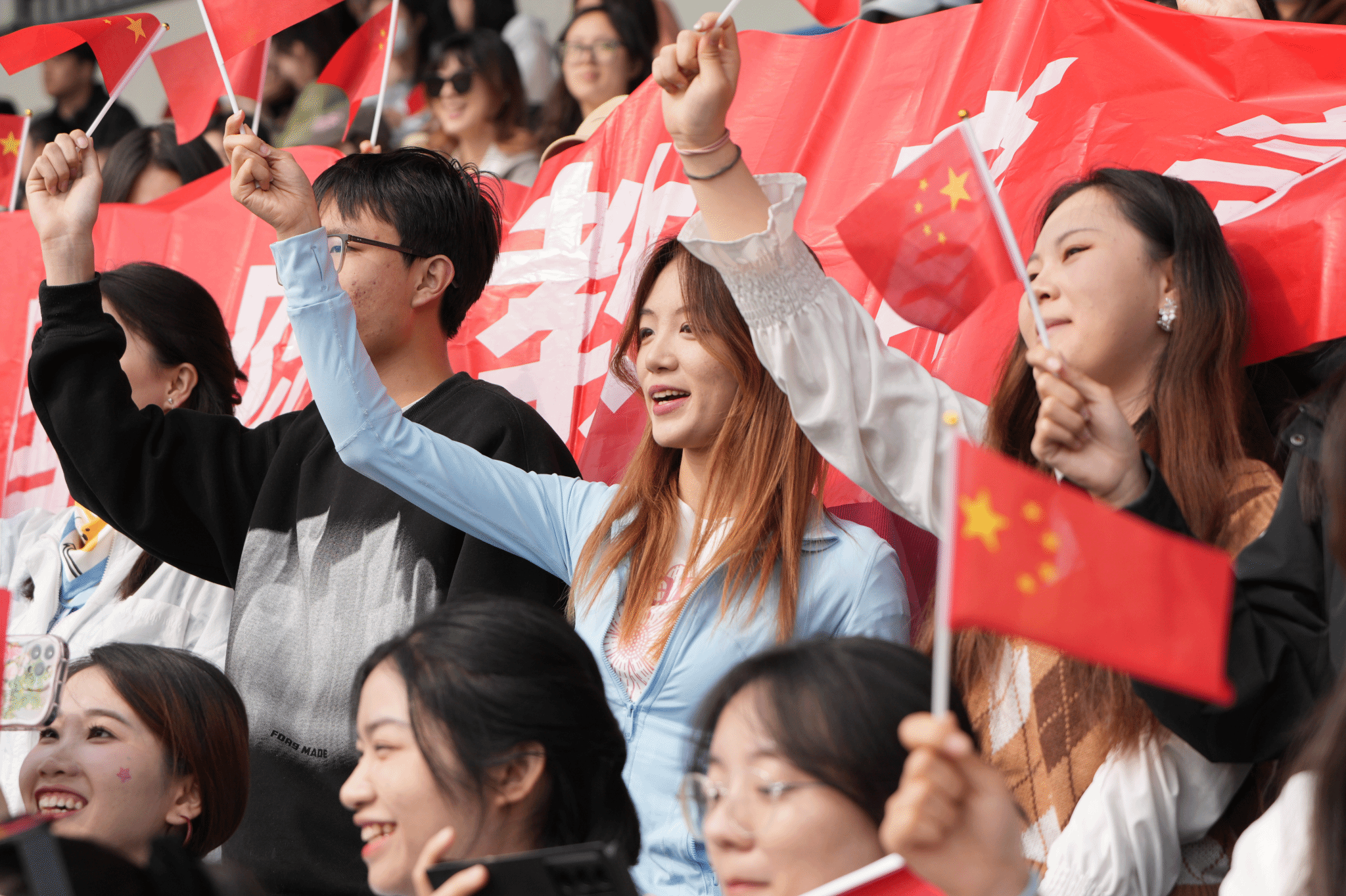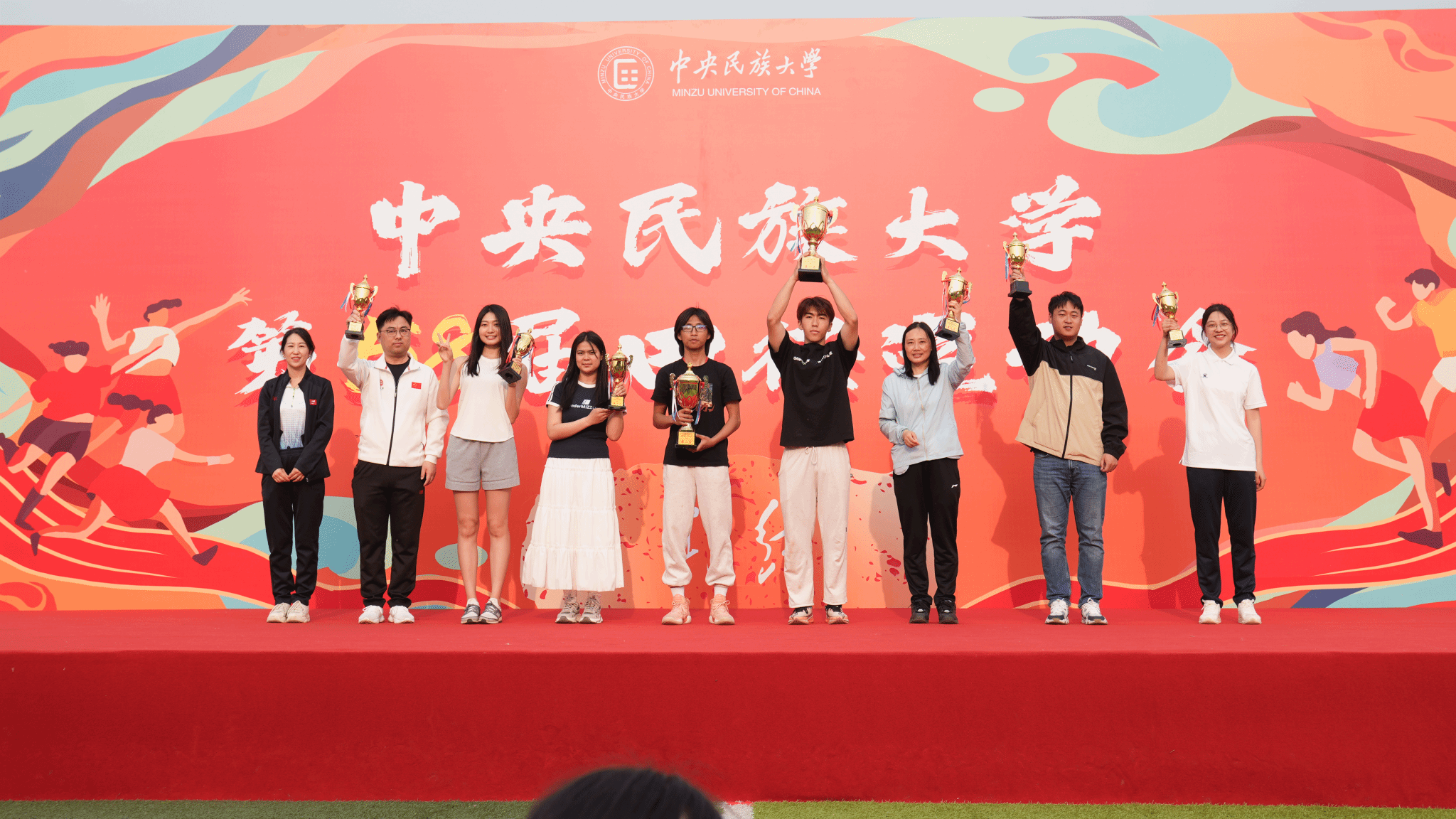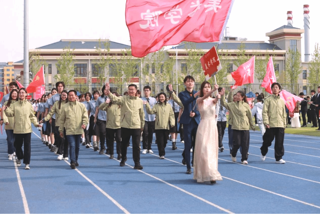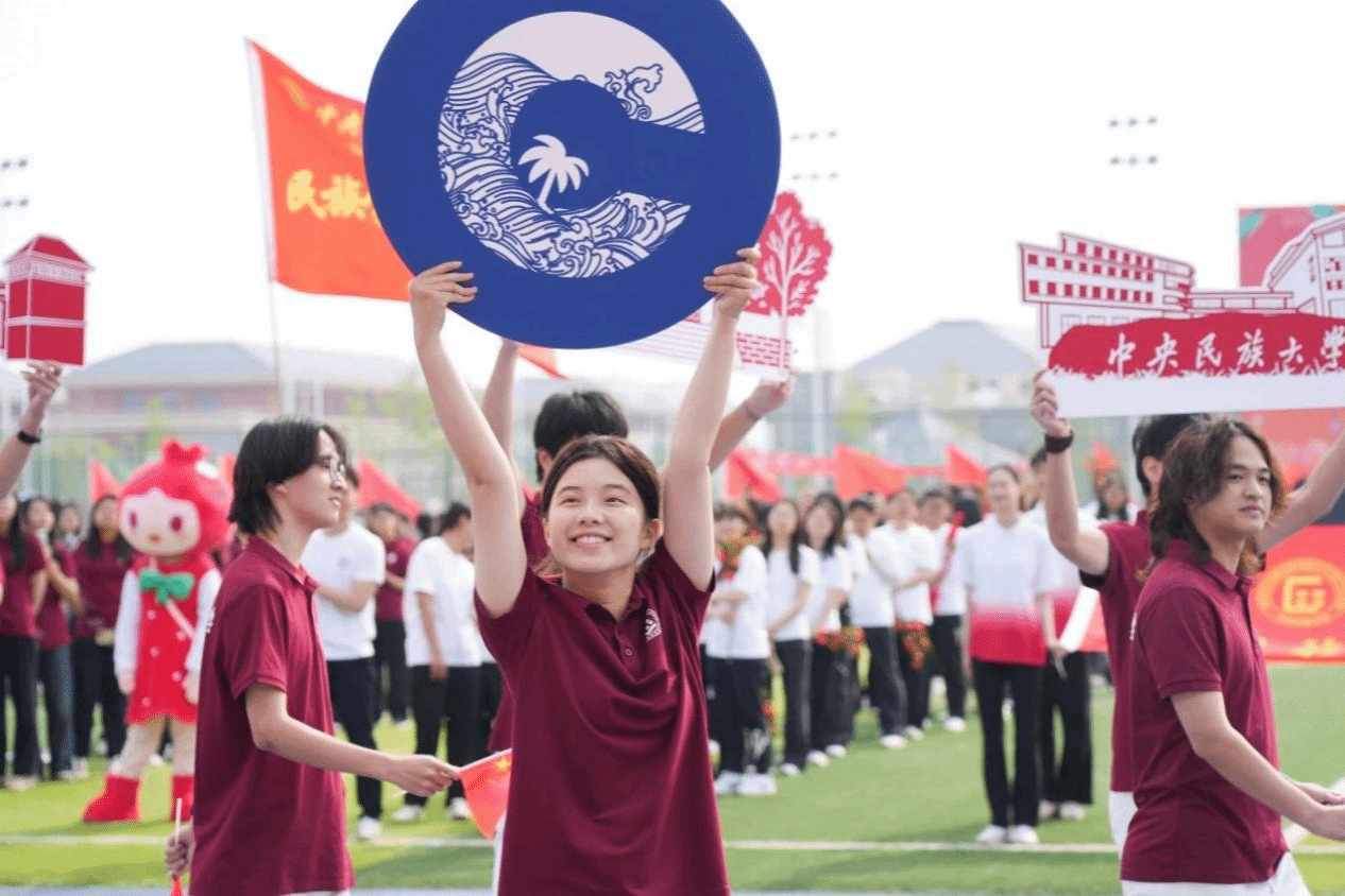 本届运动会主题为“青春飞扬 融聚民大 智创未来”。开幕式前,数百名学子在《我的祖国》音乐中演绎二十四式太极拳,动作整齐划一、刚柔并济。开幕式上,国旗队、校旗队、红旗队、裁判员方队、各学院运动员代表方队、教职工代表方队等依次入场。他们精神抖擞,迈着矫健的步伐,伴着嘹亮的口号,以昂扬奋进的姿态列队经过主席台,展现出蓬勃向上的精神风貌。