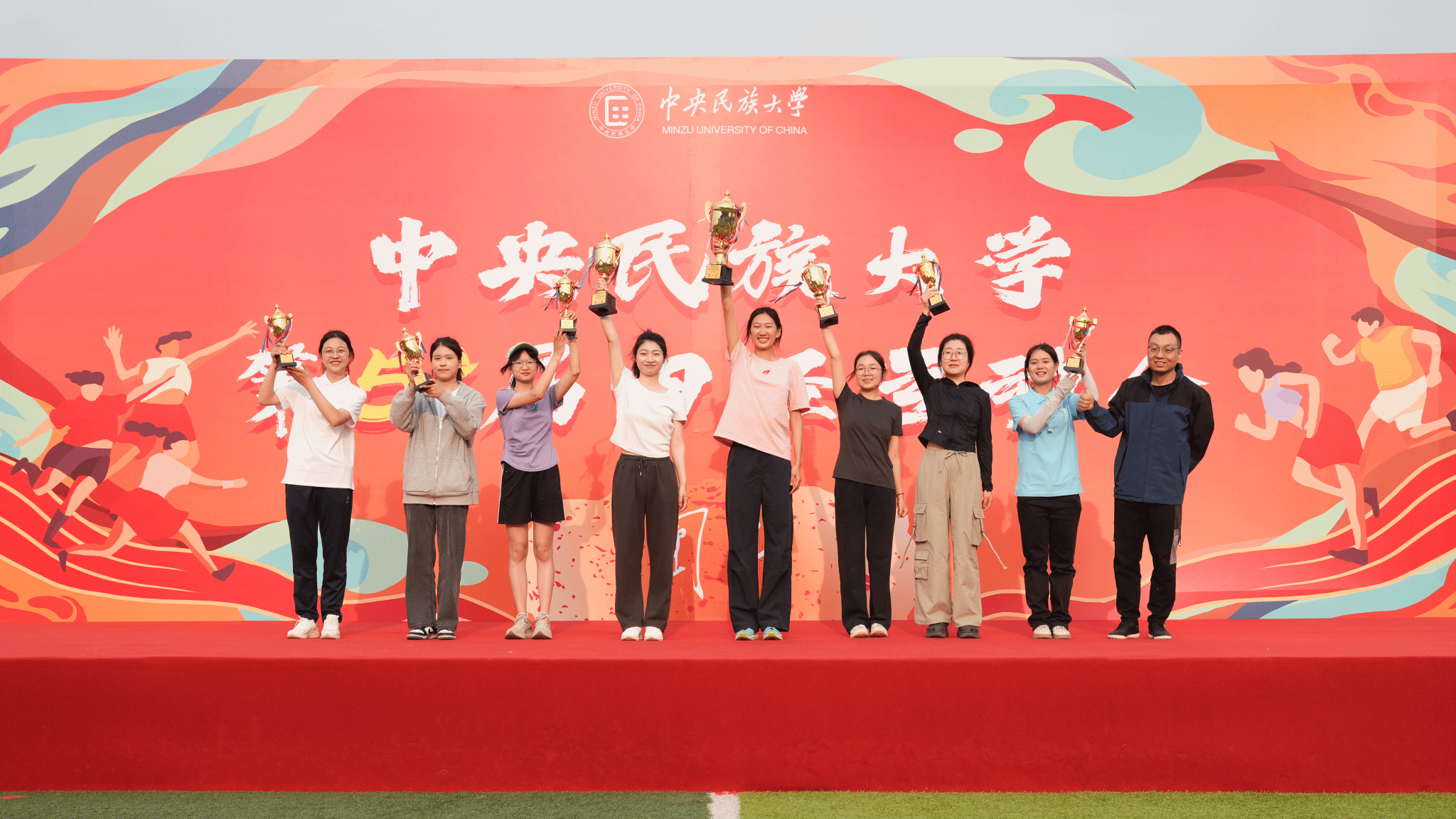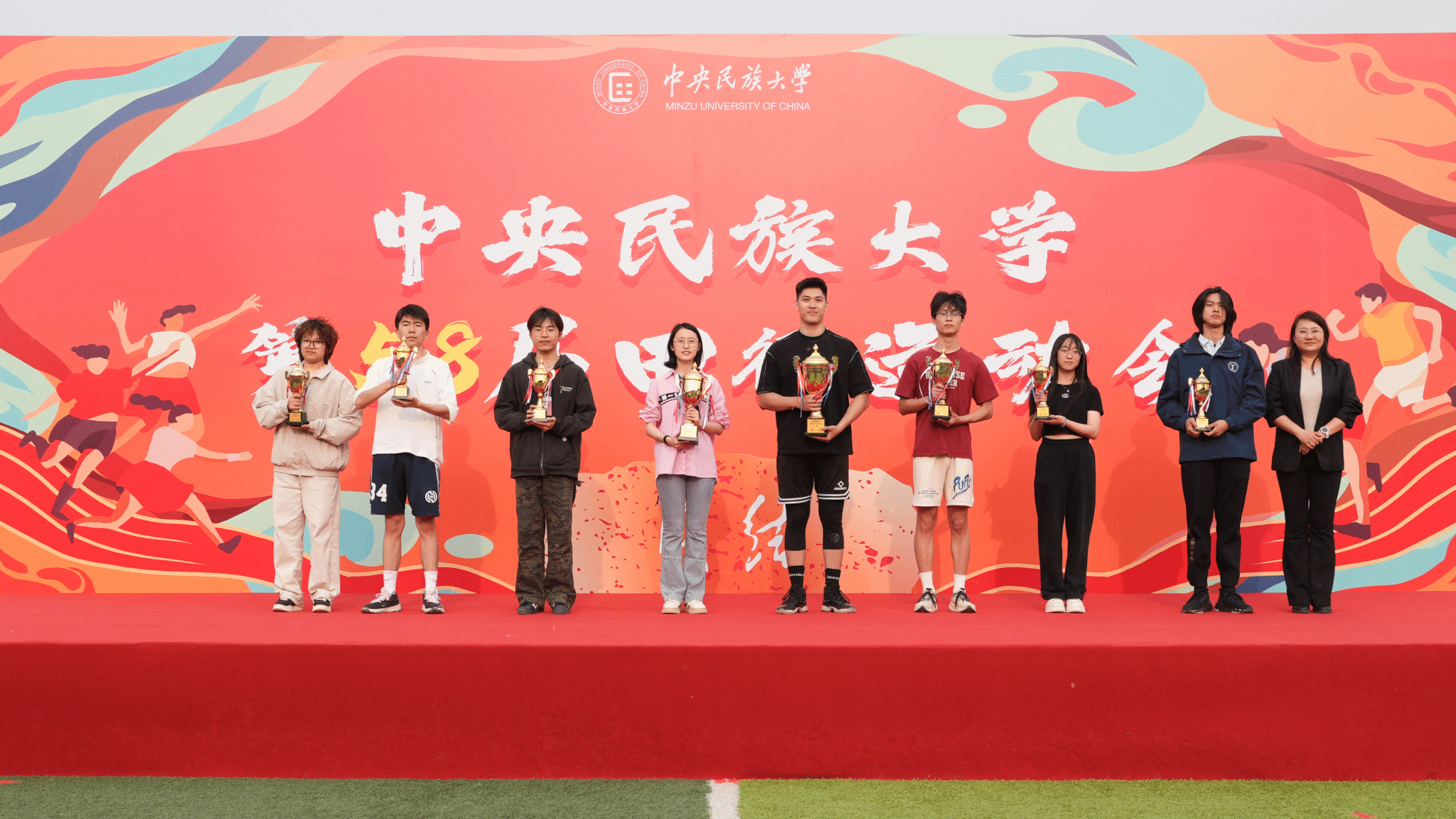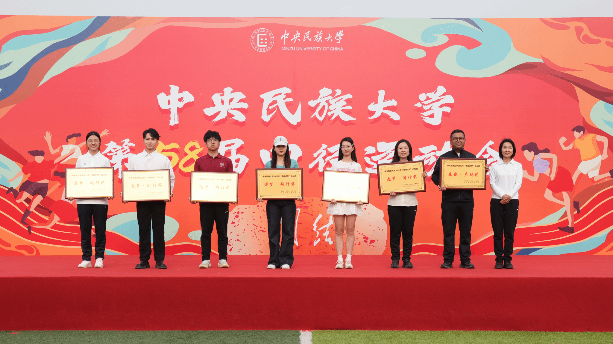 闭幕式上,杨慕云和丰台区王佐镇党委副书记孙峥为获奖学院颁奖。本届运动会中,生命与环境科学学院、理学院、经济学院等获得男子学生组团体总分前八名,生命与环境科学学院、经济学院、中国少数民族语言文学学院等获得女子学生组团体总分前八名,生命与环境科学学院、经济学院、理学院等获得男女子学生组团体总分前八名。中国少数民族语言文学学院、经济学院、管理学院等获得精神文明奖。体育学院获得最佳贡献奖。闭幕式现场还宣布了今年3月举办的ag真人试玩2025年“春晓逐梦”启航跑评比结果,最终,体育学院获“春晓•启航奖”,理学院、经济学院、教育学院等获“逐梦•同行奖”。