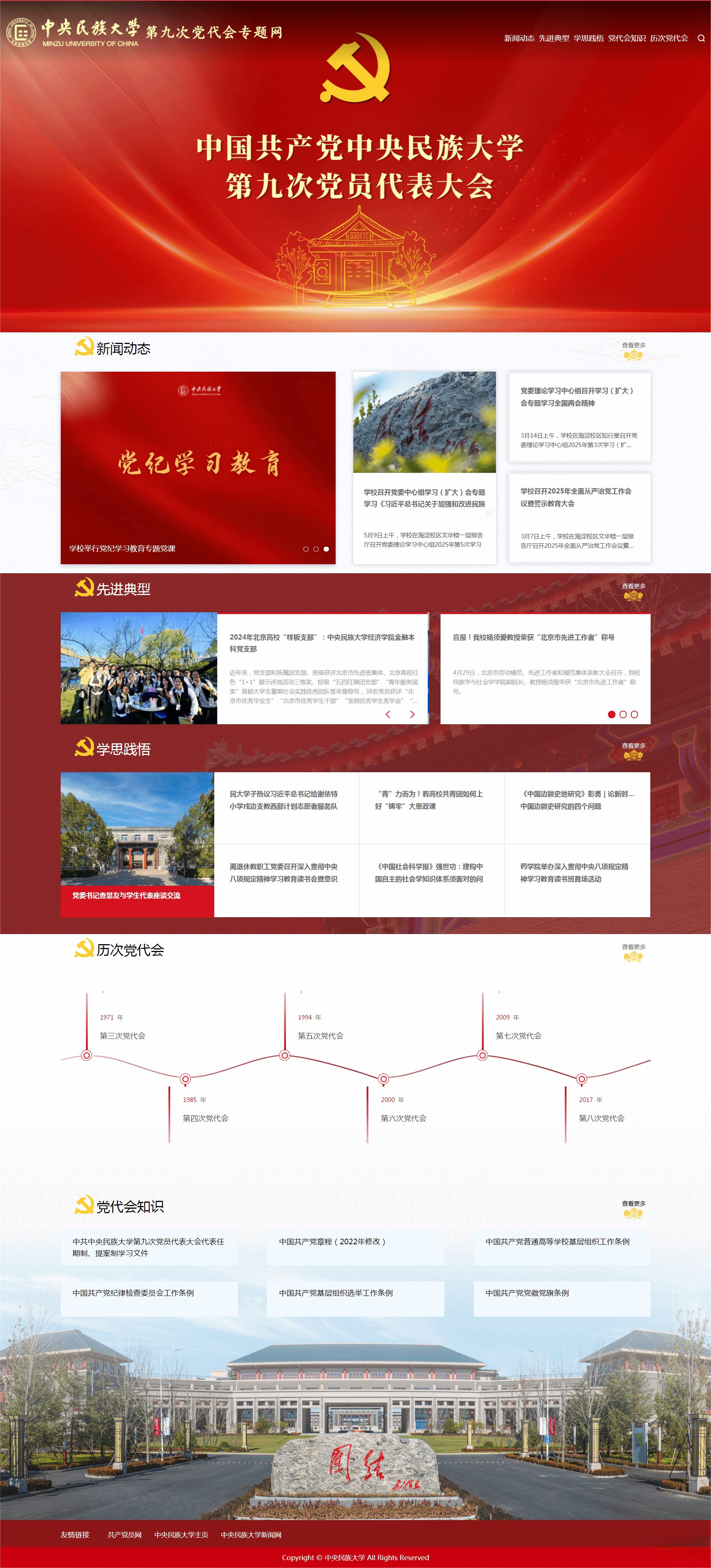 新闻网讯 中国共产党ag真人试玩第九次党员代表大会召开在即,为及时传递大会动态,全面深入展示学校改革发展成就和民大人勠力同心谋进取的生动实践,进一步凝聚共识、提振信心,增强全体师生团结奋进的责任感使命感,切实做好大会的宣传动员和思想引领,由党委宣传部牵头建设、信息化建设管理处技术支持的“中国共产党ag真人试玩第九次党员代表大会专题网站”,今天正式上线!