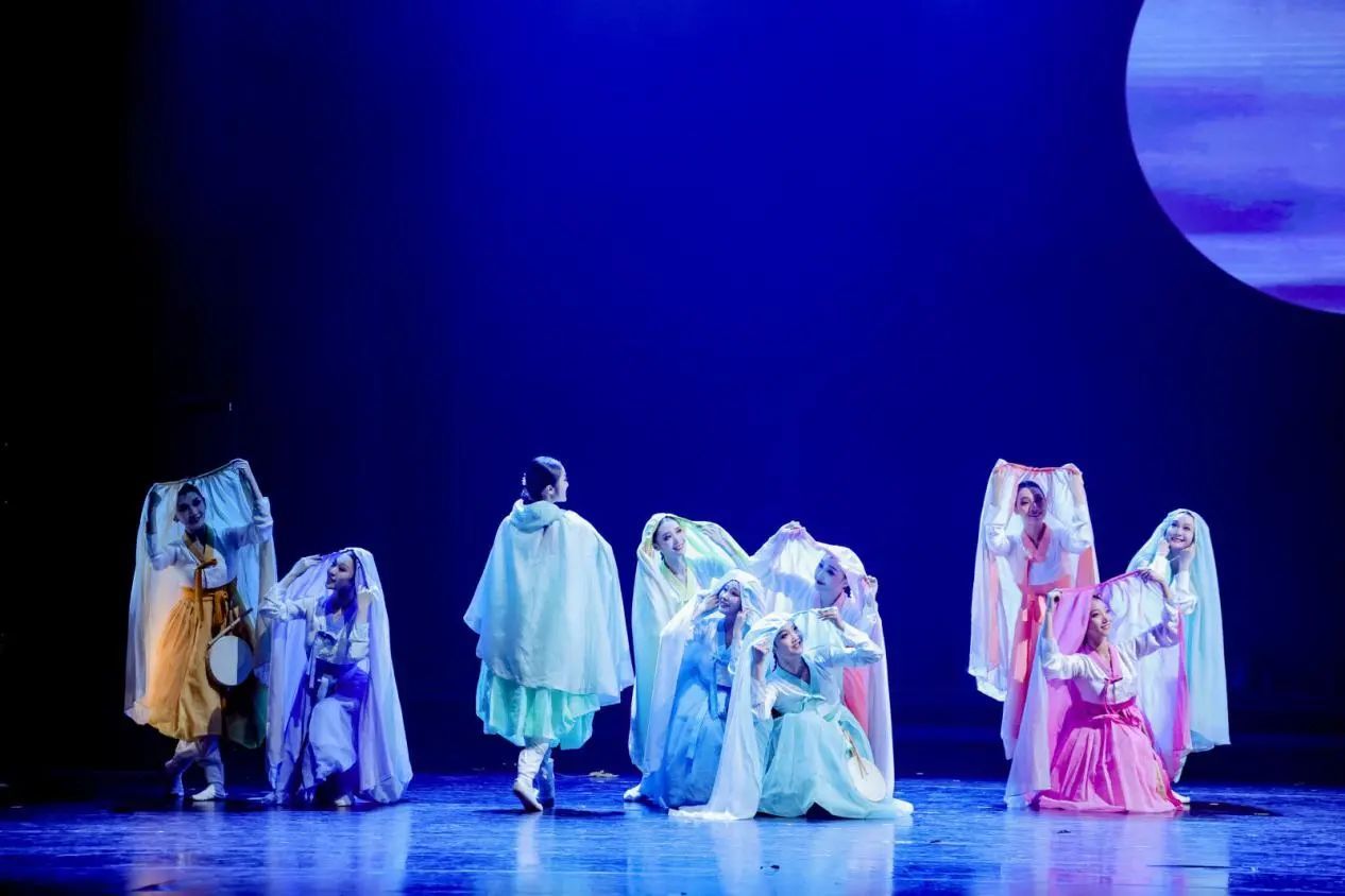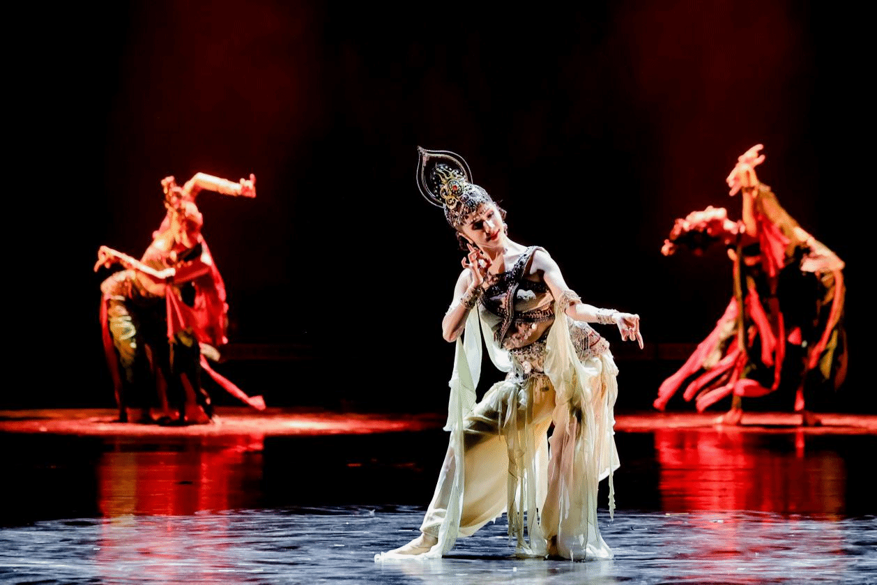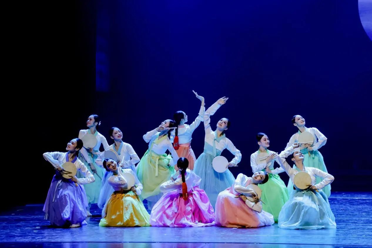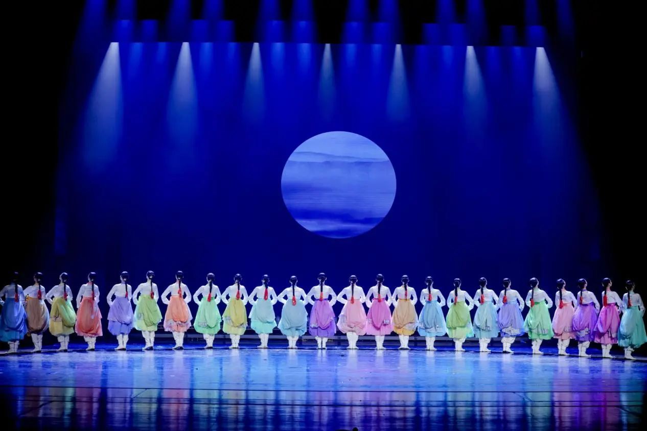 从《谷雨》中朝鲜族舞蹈语汇对节气文化的生动演绎,到《盛装·礼赞》对民族精神风貌的庄重致敬,再到《龟兹》对丝路文化与历史记忆的沉浸式呈现,三部作品共同勾勒出中华民族“和而不同、美美与共”的文化图景。作品紧扣“为人民绽放”主题,以人民为中心的创作理念贯穿始终,在艺术形式上融合传统与现代,在思想内核上映射民族团结与时代精神,赢得了现场观众的热烈反响与高度评价。