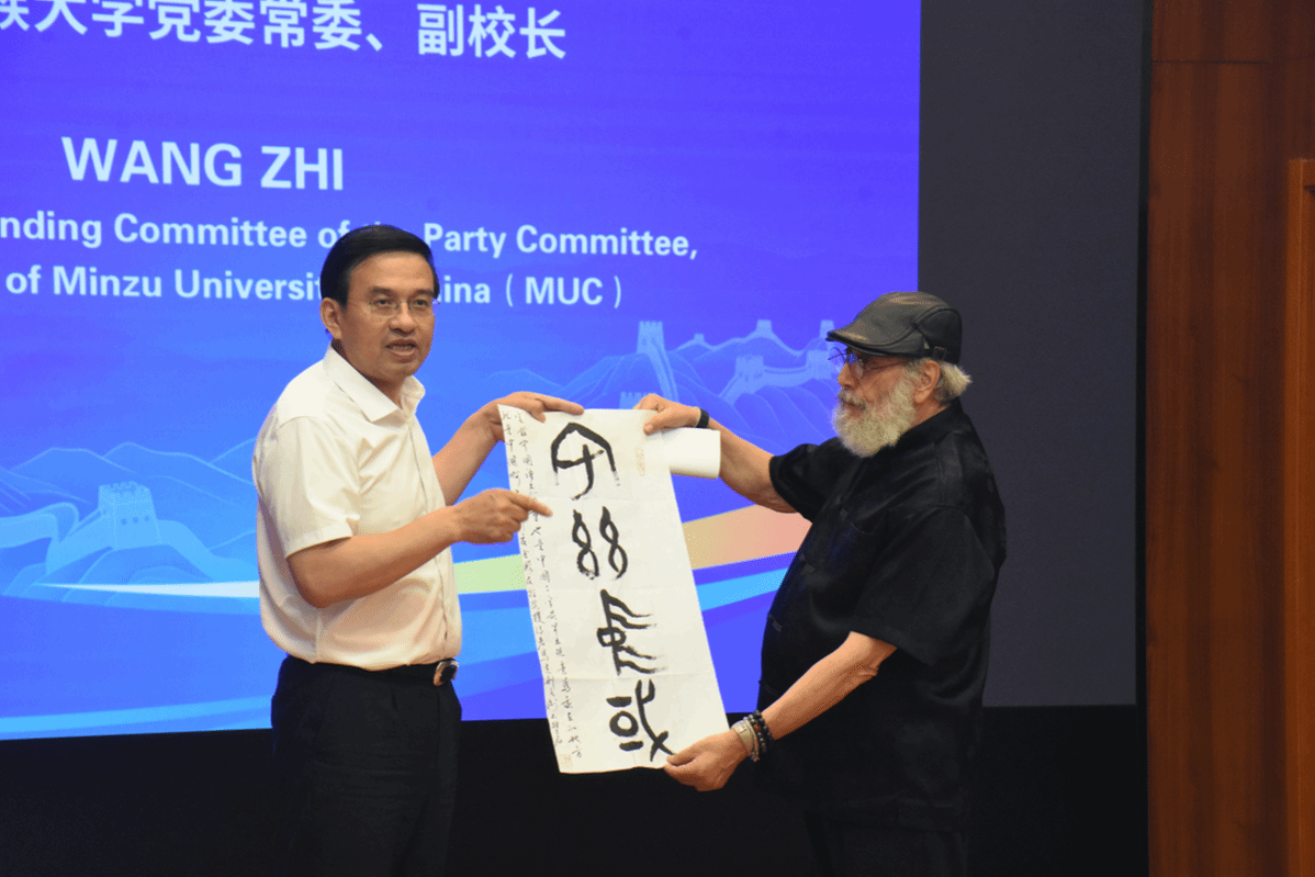 王志在致辞中表示,面对百年未有之大变局,我们比以往更需要聆听跨越国界的智慧之声。希望中外青年能从中国政府友谊奖专家的故事中汲取力量,领悟中国发展密码,努力成长为兼具中国心与世界眼的栋梁之材,为构建人类命运共同体贡献青春力量。他特别感谢了活动发起人马克力文教授,并赠送其“宅兹中国”的铭文书法作品。