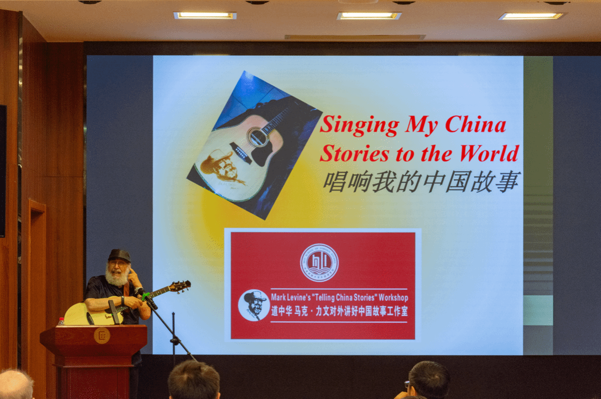 马克・力文教授随后致辞,并以 “唱响我的中国故事” 为题开讲首场讲座。在悠扬弦音中,他现场演绎了10首原创歌曲,将近20年在华工作生活经历以及北京奥运会、中国共产党成立 100 周年等重大历史事件融入旋律,用歌声勾勒时代印记,讲述中国故事,现场掌声不断,反响热烈。