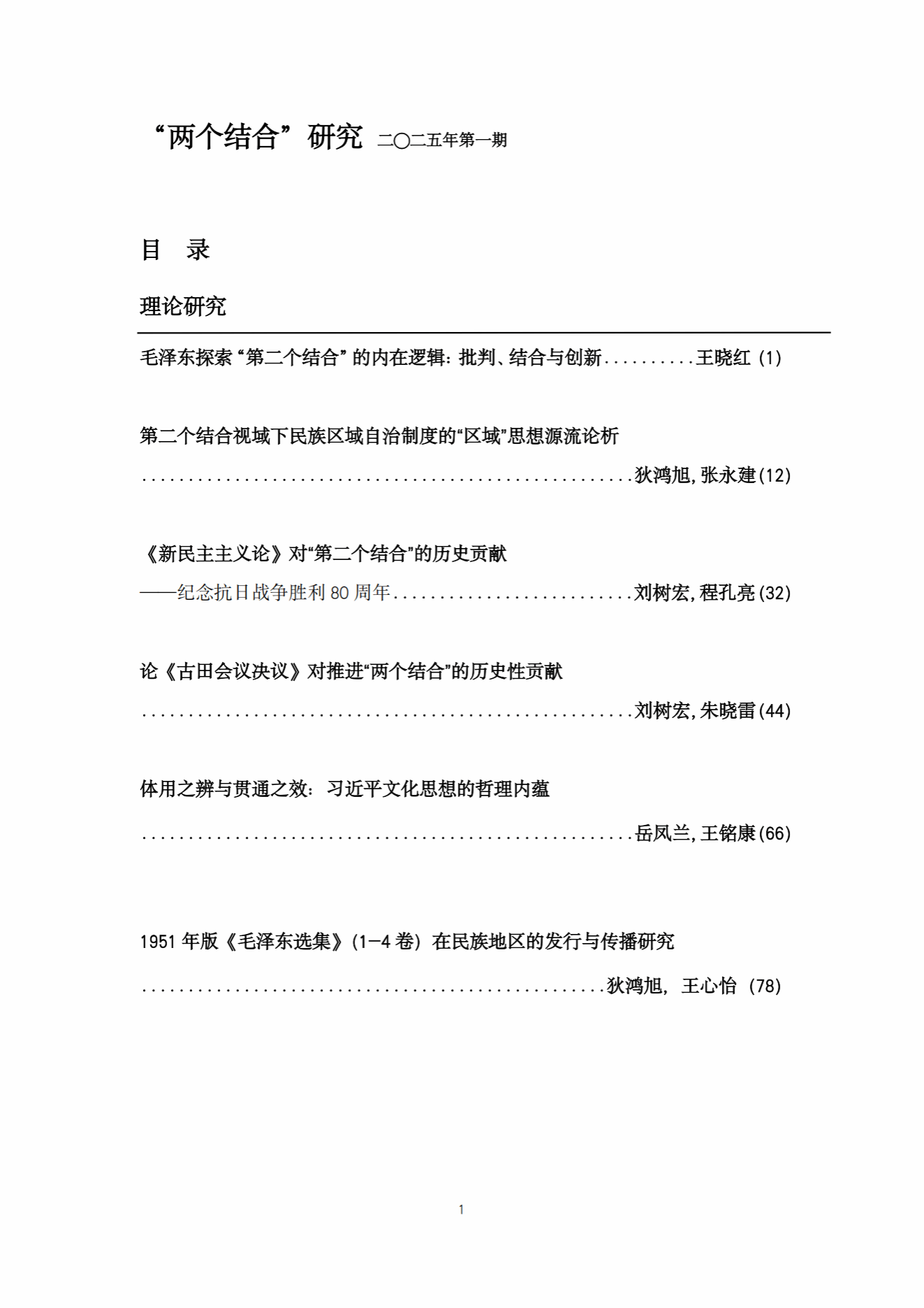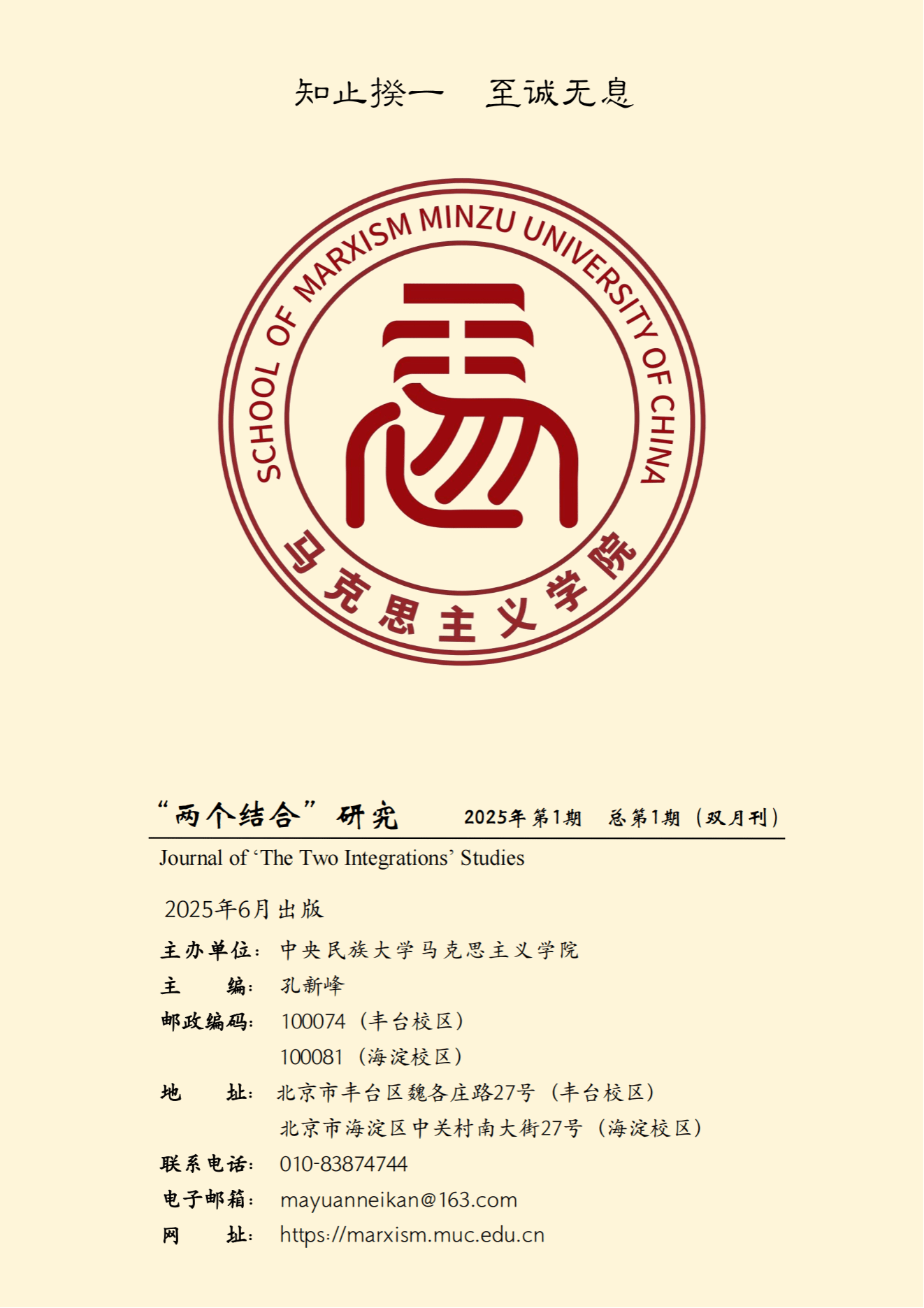 《“两个结合”研究》为双月刊,由马克思主义学院主办,第1期内容聚焦核心命题,设有理论研究、教学探索、政策解读等栏目,内容丰富,视角多元,刊载了马克思主义学院师生在“两个结合”前沿问题上的最新研究成果。
