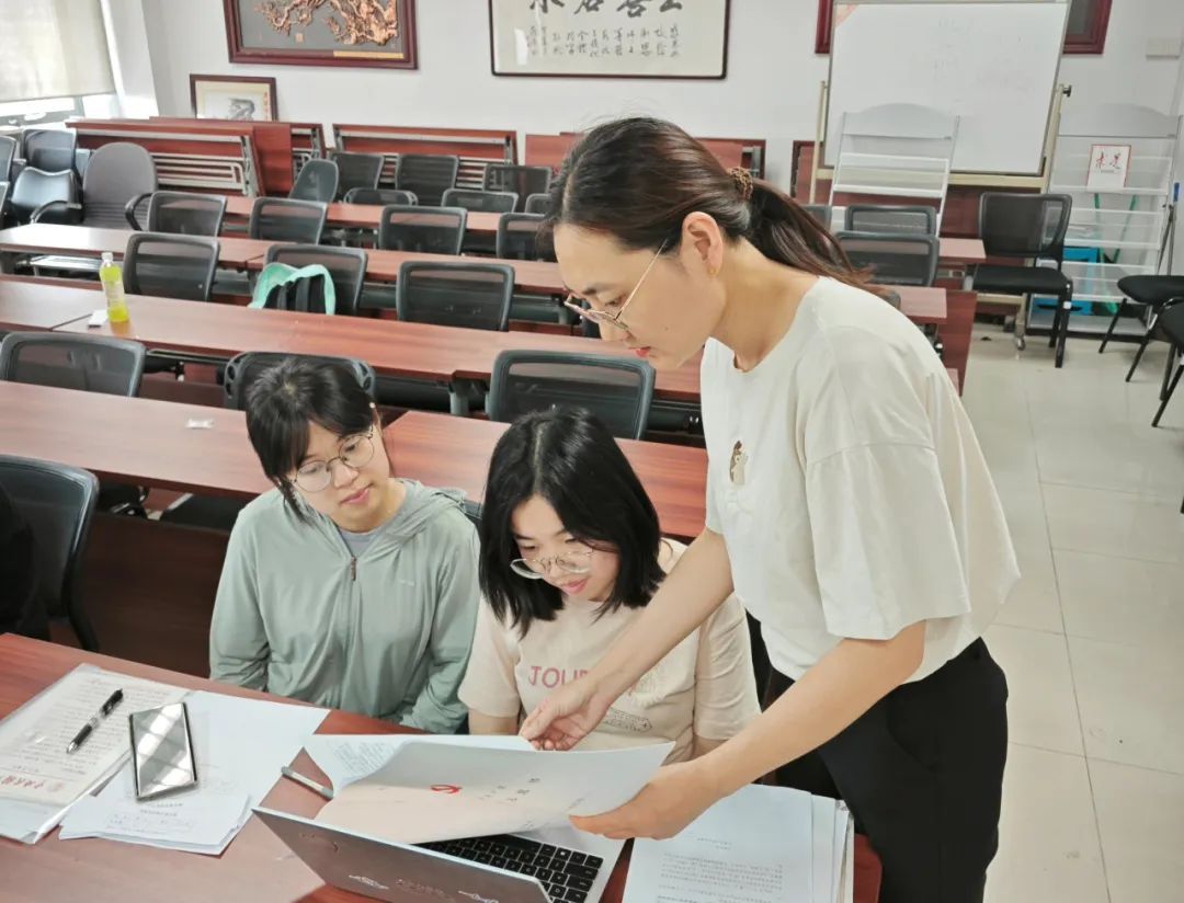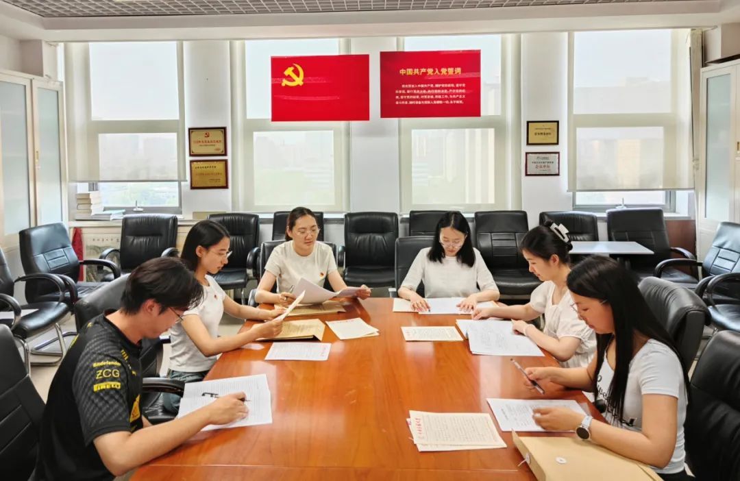 刘明洁与学生党员一起审查入党积极分子材料