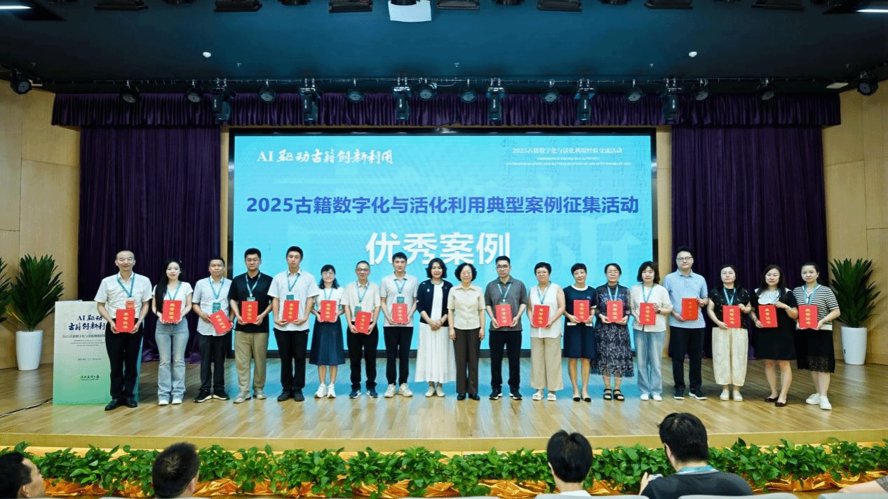同时,大会现场揭晓了“2025古籍数字化与活化利用典型案例”征集活动入选名单。征集活动经过初评、专家终评,最终确定了20个古籍数字化与活化利用优秀案例,45个典型案例以及21个提名案例。我校图书馆“经典永耀中华 古籍铸梦同心——ag视讯图书馆古籍数字化与活化利用案例”(策划人:刘明新、黄金东、塔娜、王晓燕、郭跃)荣获2025古籍数字化与活化利用优秀案例奖。