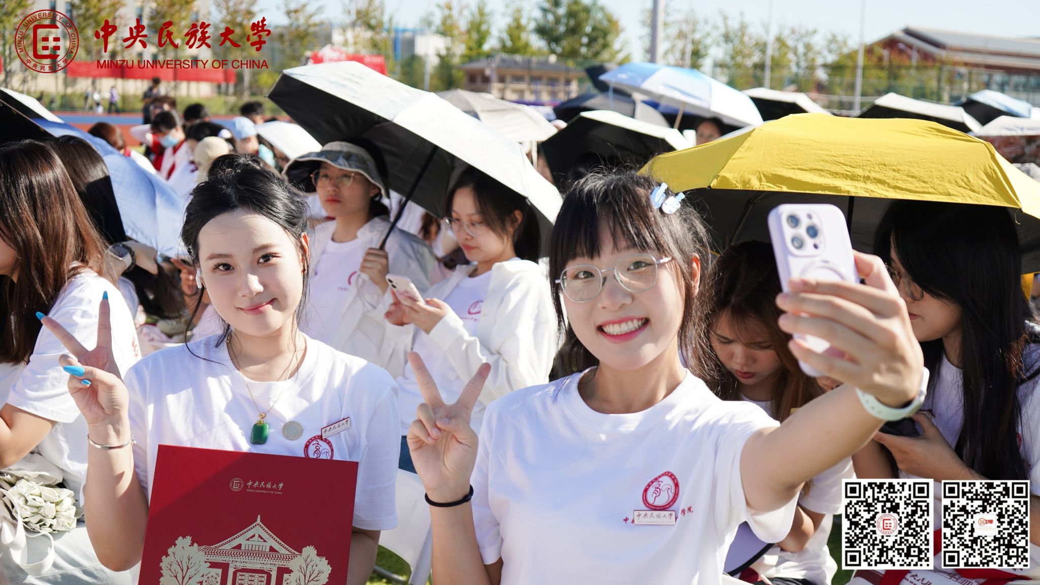 本科生新生代表、新闻与传播学院阿旺曲珍以收到录取通知书时家乡的欢庆为引,感恩党和国家为边疆民族地区学子铺就求学坦途。她向全体新同学发出邀约,勇担使命、求真创新、包容共美,用专业所学讲好中华民族共同体故事,以“强国有我”的青春誓言回应时代厚望。