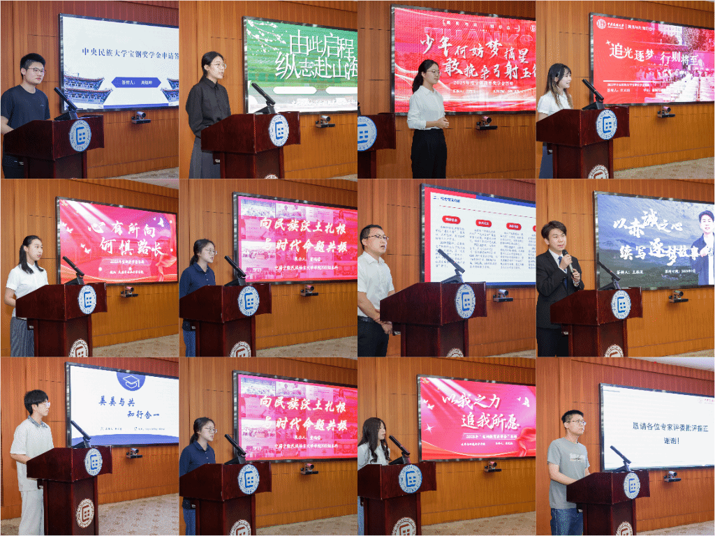 经学生本人申请,各学院推荐,党委学生工作部、学生处材料审核,共有9名本科生候选学生和3名研究生候选学生进入本次答辩环节。答辩会现场,候选同学按照抽签顺序分别从学业成绩、科研创新、社会实践、志愿服务等方面进行个人风采展示,分享在民大求学的成长与收获,展示了各位学子的综合素养和优秀品质,也激励了同学们在学习和实践中锤炼本领,在新时代新担当新作为。