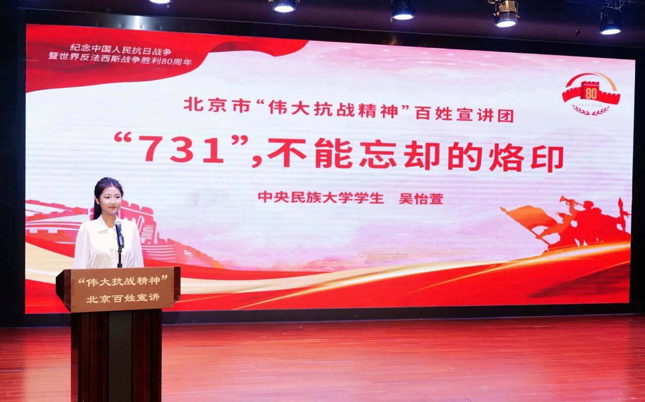 “讲述不是目的,而是为了让更多人铭记历史、开创未来,让伟大抗战精神在代代相传中永不褪色。”这是吴怡萱今年8月,加入到北京市“伟大抗战精神”百姓宣讲团时讲述的内容。一个月内,她完成了20余场宣讲,线上线下覆盖一万余人。每一次对历史的回望,都是为了更好地出发。从校园到社区,从机关到企业,她一次次站上讲台,把侵华日军第七三一部队的罪证、中华民族抗战的历史讲给更多人听。