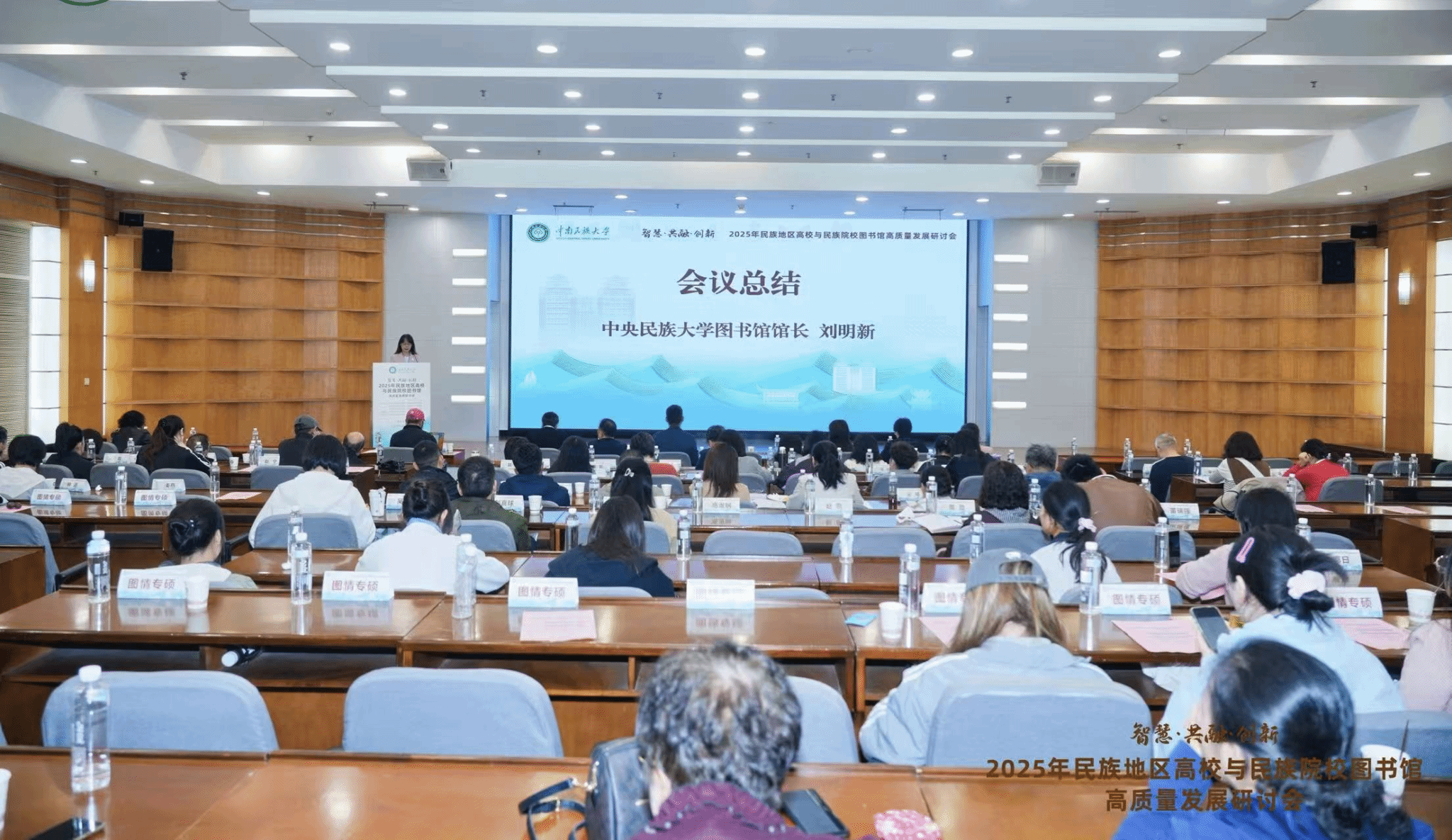 在闭幕式上,我校图书馆馆长刘明新代表大会作会议总结,对此次会议给予了充分肯定,并提出民族地区高校和民族院校图书馆的发展,必须以铸牢中华民族共同体意识为主线,持续以“和”为基、以“美”为向、以“智”为翼,在协同、责任与创新中推动行业高质量发展,强化民图人的自觉,以民图人的情怀,为图书馆工作的持续优化提供更多的灵感。