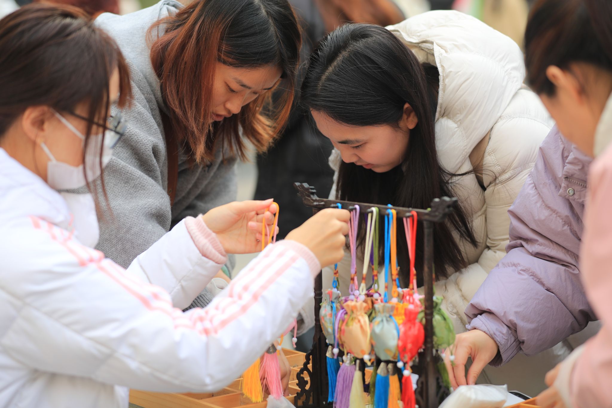 “MUC养生市集”内,学生们体验中药香囊制作。