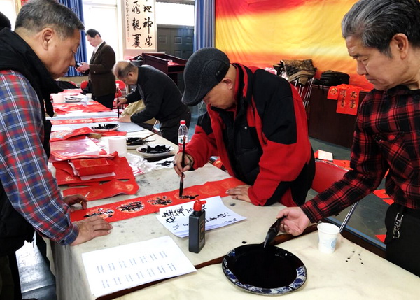 热闹非凡的活动现场,离退休教职工书画协会的老师们挥毫泼墨,一幅幅散发着清新墨香的“春联”和“福”字当下完成送到离退休老同志们手中,为老同志们送上新春第一份祝福。大家拿着一幅幅吉祥喜庆、墨宝飘香的春联,脸上荡漾着幸福的喜悦,整个活动现场被红色的春联和热闹的人群映衬得年味十足。