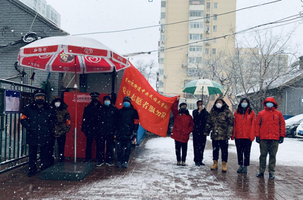 民大社区工作者、党员们、物业人员、保安、志愿者坚守防控服务岗位