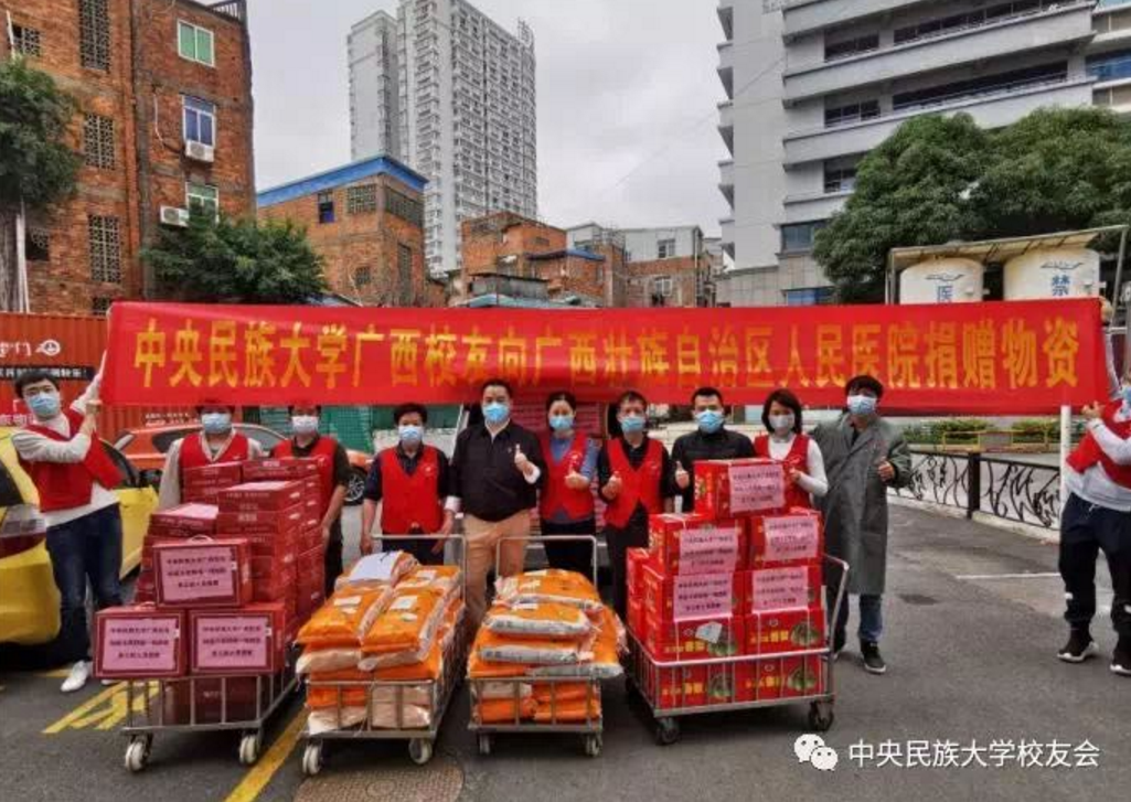 ag视讯广西校友向广西新冠肺炎定点收治医院广西壮族自治区人民医院和邕武医院捐赠生活物资,慰问广西一线医务工作人员以及驰援武汉的首批14人医疗队。