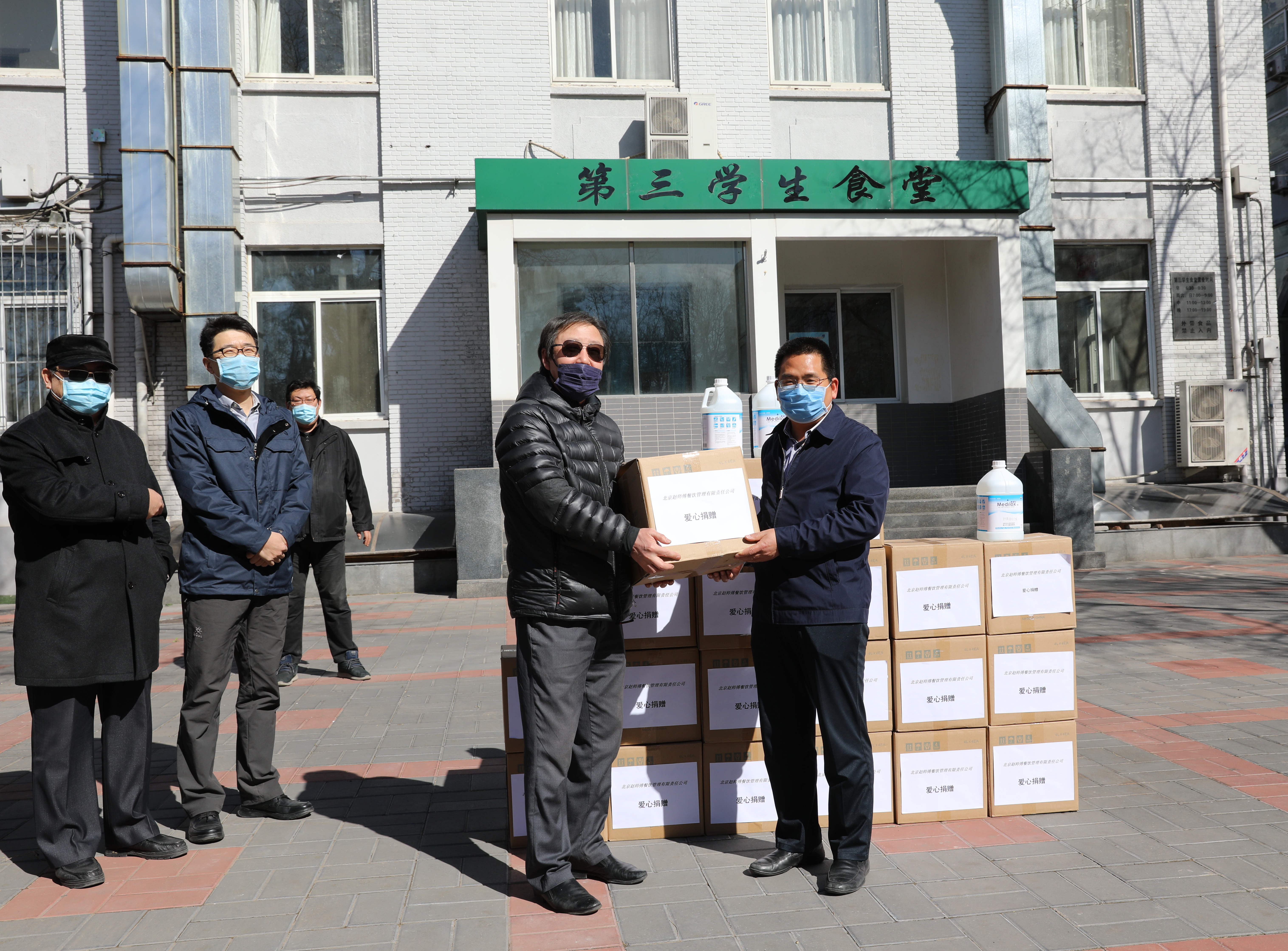 据了解,捐赠方北京赵师傅餐饮管理有限责任公司是我校学生食堂合作方之一。疫情发生以来,学校后勤餐饮管理服务中心按照学校要求,不断强化管理、科学防疫、提升服务,全力为在校师生提供安全健康饮食。此次捐赠也是校企合作同心抗疫,攻克时艰的一次生动再现。(摄影:袁海琴)