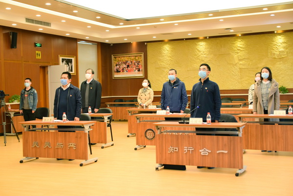 李计勇在讲话中指出,2020年的春天,注定会被载入英雄的共和国史册。在过去两个多月时间里,按照中央决策部署和国家民委、教育部、北京市安排要求,学校党委在第一时间以“战时状态”应对新冠肺炎疫情,一场全覆盖的综合战“疫”在民大校园打响,一场民大学子齐上阵的立体战“疫”在各地打响,一场凝心聚力的同心战“疫”在“云端”飞行,全体民大人携手并肩前行、共克时艰,用实际行动为打赢这场疫情防控阻击战贡献了自己的力量。这场抗击新冠肺炎疫情的战“役”让每一名国人更加深刻地感受到了伟大祖国的凝聚力和战斗力。作为志愿加入中国共产党的青年学子,要思考在这场战“疫”中应该学习些什么?做些什么?如何在实际行动中“不忘初心,牢记使命”?他强调,一是要有坚定信念、矢志不渝之“决心”,做到“组织上入党一生一次,思想上入党一生一世”;二是要有为民服务、乐于奉献之“真心”,用实际行动践行“随时准备为党和人民牺牲一切”的入党誓词;三是要有严于律己、自我约束之“恒心”,在重要选择中体现共产党员的价值追求。