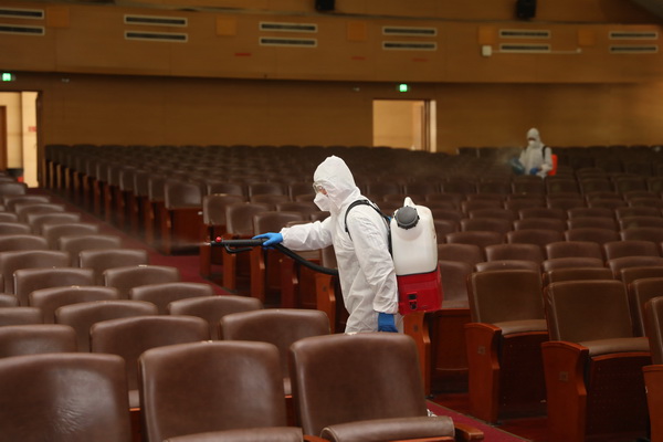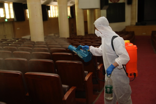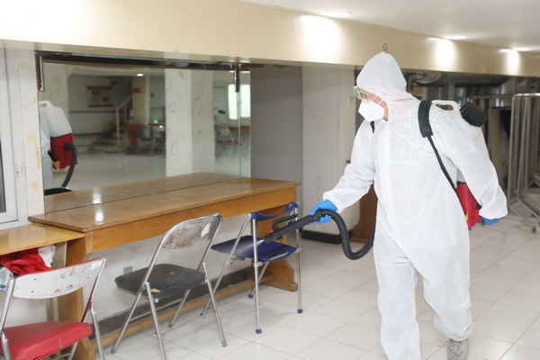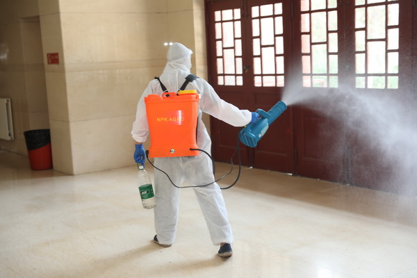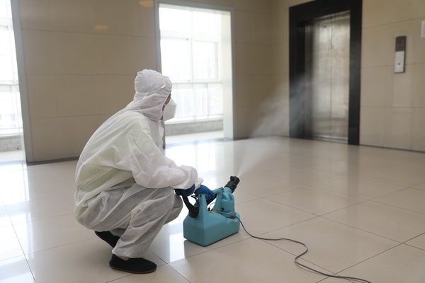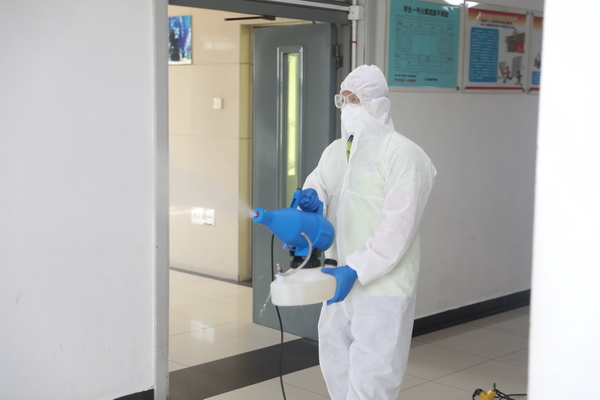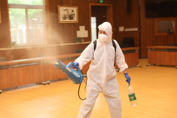 本次消杀主要对包括学生公寓、教学楼、办公楼、图书馆、食堂、体育馆、校园超市等28处重点公共区域进行无人状态下的喷雾消杀作业,消杀面积达53000多平米。消杀作业符合国家消杀服务执行标准和消杀效果执行标准。(摄影:周陈)