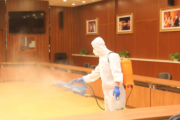 新闻网讯 为确保返校毕业生在学校活动的重点公共区域环境卫生安全,根据《ag视讯2020年春季学期学生返校工作方案》文件精神和要求,结合学校疫情防控实际情况,6月6日,我校后勤保障处组织专业消杀公司对学校重点公共区域进行全面消毒杀菌。
