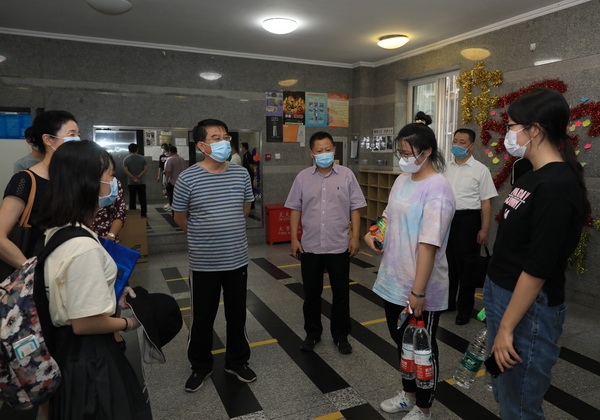 新闻网讯 夏近叶成帷,莘莘学子归。根据“自愿、分批、有序”的原则,继6月8日第一批158名本科毕业生返校报到后,6月14日,我校第二批通过学校审核符合返校条件的1200余名本科毕业生陆续返校报到。校党委书记张京泽,党委常务副书记、纪委书记马文喜,党委常委、副校长宋敏、王丽萍,党委副书记、副校长李计勇一行,先后来到学校东、西门返校接待现场、快递寄送点和学生公寓,迎接第二批返回学校的毕业生们,检查指导返校工作,看望慰问工作人员。