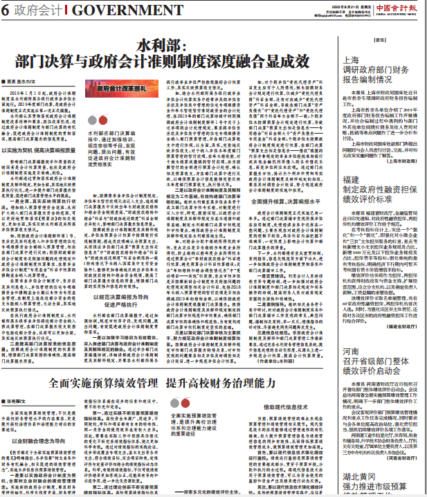 新闻网讯 近日,《中国会计报》8月21日第6版“政府会计”发表我校党委常委、总会计师张艳丽教授文章《全面实施预算绩效管理 提升高校财务治理能力》。文章指出,全面实施预算绩效管理,不仅是提升高校财务管理水平的内在要求,更是提升高校治理体系和治理能力建设的重要途径。文章强调,以业财融合理念为导向,建立和完善预算绩效指标体系,注重预算绩效评价和结果应用,借助现代信息技术提升预算与绩效管理信息的同步有效性。