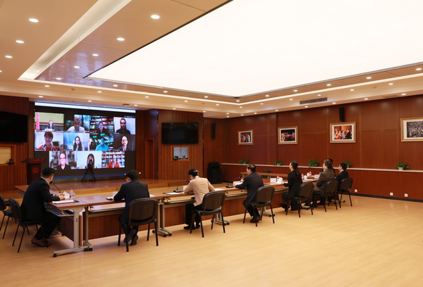 我校相关学院和部门主要负责人参加了此次视频会议。(摄影:马丹妮)