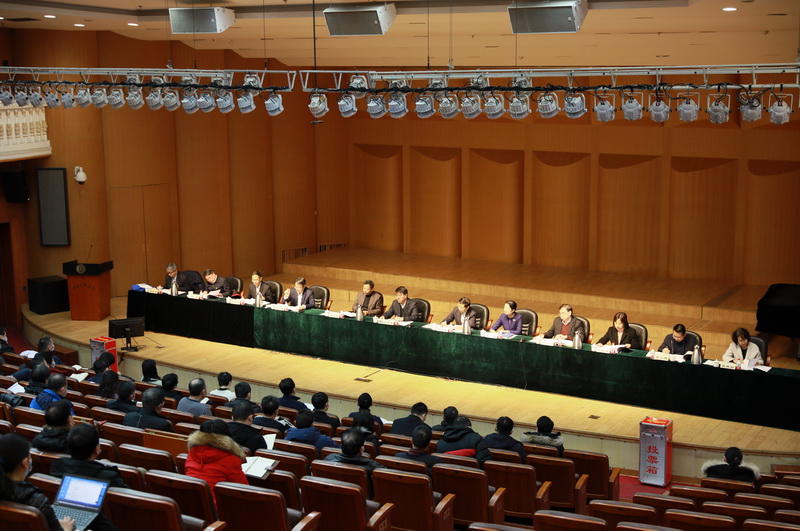 国家民委考核委员会成员、人事司干部曾致语、纳迪拉·伊力江到会指导。按照疫情防控要求,本次大会设立主会场和视频分会场。学校领导班子成员、校长助理、各部门各单位主要负责人在中慧楼音乐厅主会场参会;学校学术委员会成员,各教学科研单位教授委员会中具有正高级专业技术职务成员,第六届教代会主席团成员及各分团正、副团长,民主评议干部工作委员会成员、民主党派主要负责人,各级人大代表和政协委员在文华楼西区一层报告厅视频分会场参会。(摄影:马丹妮)