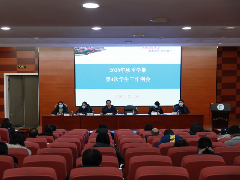 会议强调,要精准谋划好2021年学生工作。一是以铸牢中华民族共同体意识为主线做好各项工作;二是进一步完善“三全”育人体制机制,推动学生工作高质量发展;三是加强学生工作队伍建设,不断提升教育管理服务水平。
