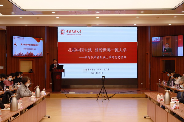郭广生指出,2021年是中国共产党建党100周年,是实施“十四五”规划、开启全面建设社会主义现代化国家新征程的第一年,做好今年的工作具有特殊重要的意义,要以铸牢中华民族共同体意识为主线,深化教育评价改革,启动“双一流”新一轮建设;坚持立德树人,全面提升人才培养质量;进一步深化人事制度改革,全面提升教师队伍活力;以“四个面向”为导向,进一步提升科学研究能力与水平;进一步推进治理体系和治理能力现代化,构建与现代大学相匹配的管理体制机制;做好丰台新校区的建设。