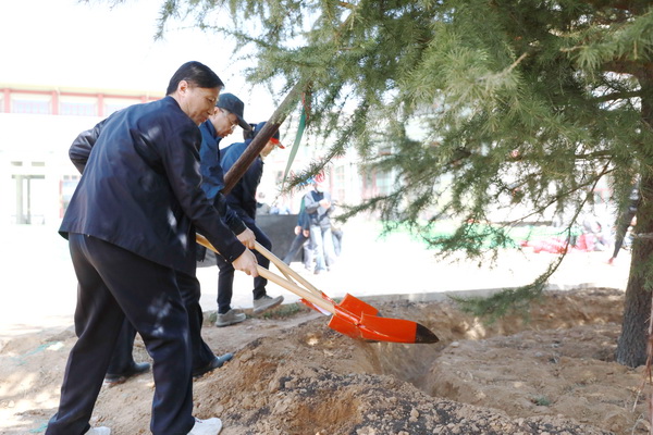 在丰台校区教学科研楼前的植树活动现场,领导和师生代表根据活动安排,六人一组,分工协作。大家干劲十足,每一道工序都有条不紊地进行,呈现出一派热火朝天的景象。此次植树活动,使广大干部师生们进一步增强了绿色发展理念,更为丰台校区注入了新活力、种下了新希望。