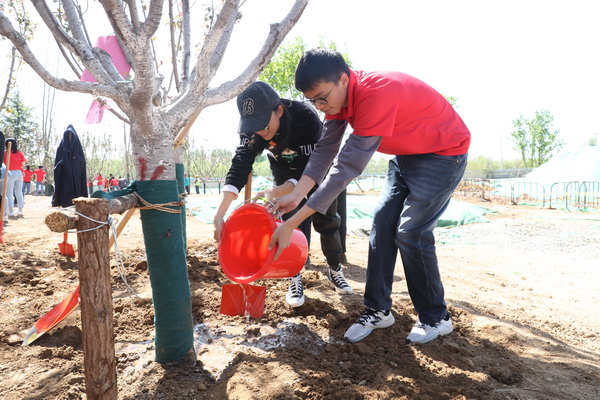 新闻网讯 最是一年春光好,新园添绿正当时。在北京最明媚的春日,挥锹铲土,扶苗培土,提水浇灌,象征着ag视讯70年“红色育人路”的雪松,代表着“中华民族一家亲,同心共筑中国梦”的56棵樱花树被悉心种下。一棵棵昂然挺立的新植树苗在师生们的汗水和笑脸中迎着春日的艳阳,为日新月异的丰台校区增加了一抹最亮眼的新绿。