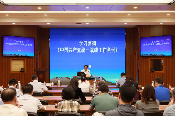 张健深入解读了《条例》修订的背景、过程和意义,对统一战线的重要地位作用、加强党对统一战线工作的集中统一领导、各领域统战工作的主要任务和着力重点、加强党外代表人士队伍建设等几个方面展开重点解读,并介绍了贯彻落实《条例》的要求和方法。