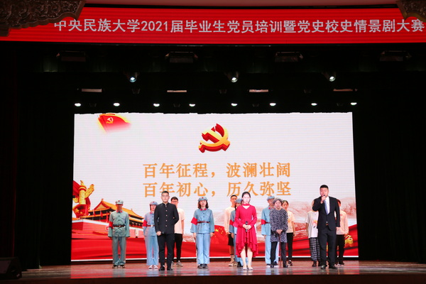 随后,一场走“新”更走“心”的情景剧搬上了主题党课的讲堂。由学生党员、发展对象和入党积极分子本色演绎的6部情景剧,以重温革命历史、赓续延安红色基因和铸牢中华民族共同体意识为背景,用一个个感人的故事,一幕幕动人的场景,呈现了一场党史、校史的思想盛宴,深刻诠释了民大学子“坚定理想信念,铸牢中华民族共同体意识”的决心。